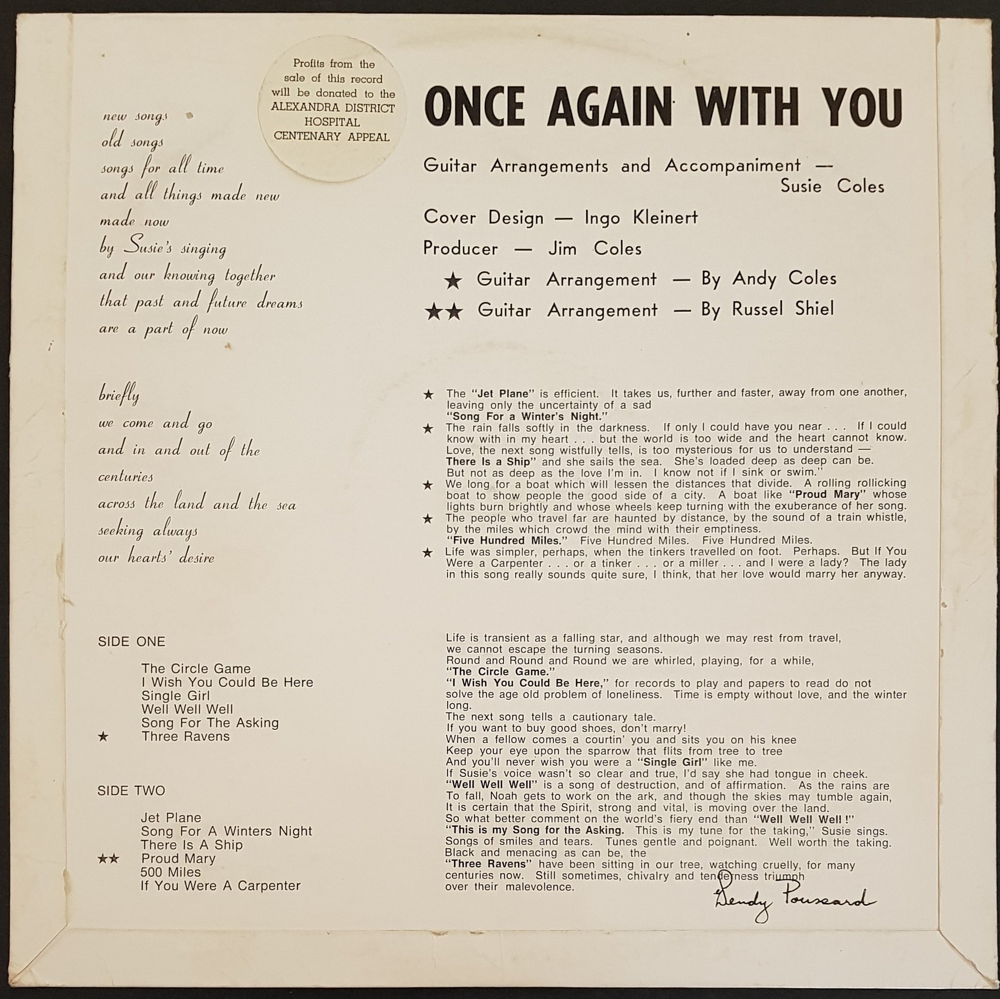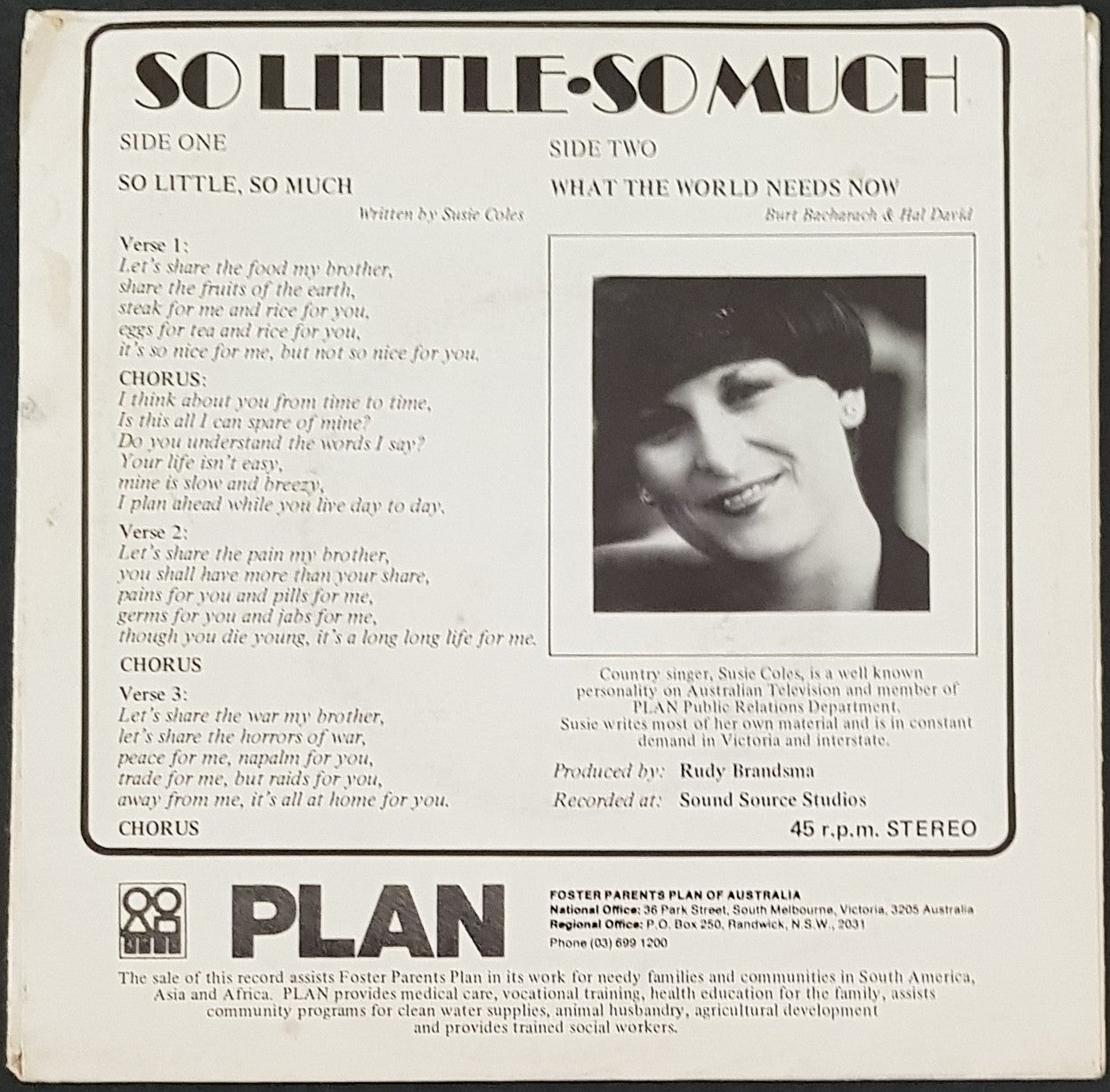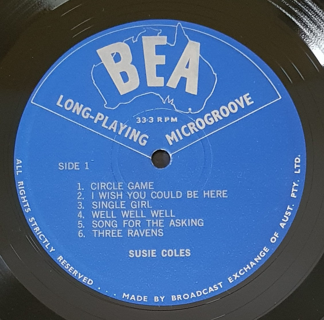 1971 BEA. Edge wear and scuffing on cover. Signed by Susie on Front. Sold with VG+/VG (cover) copy of the So Little - So Much 7". Very Rare Folk Offering.