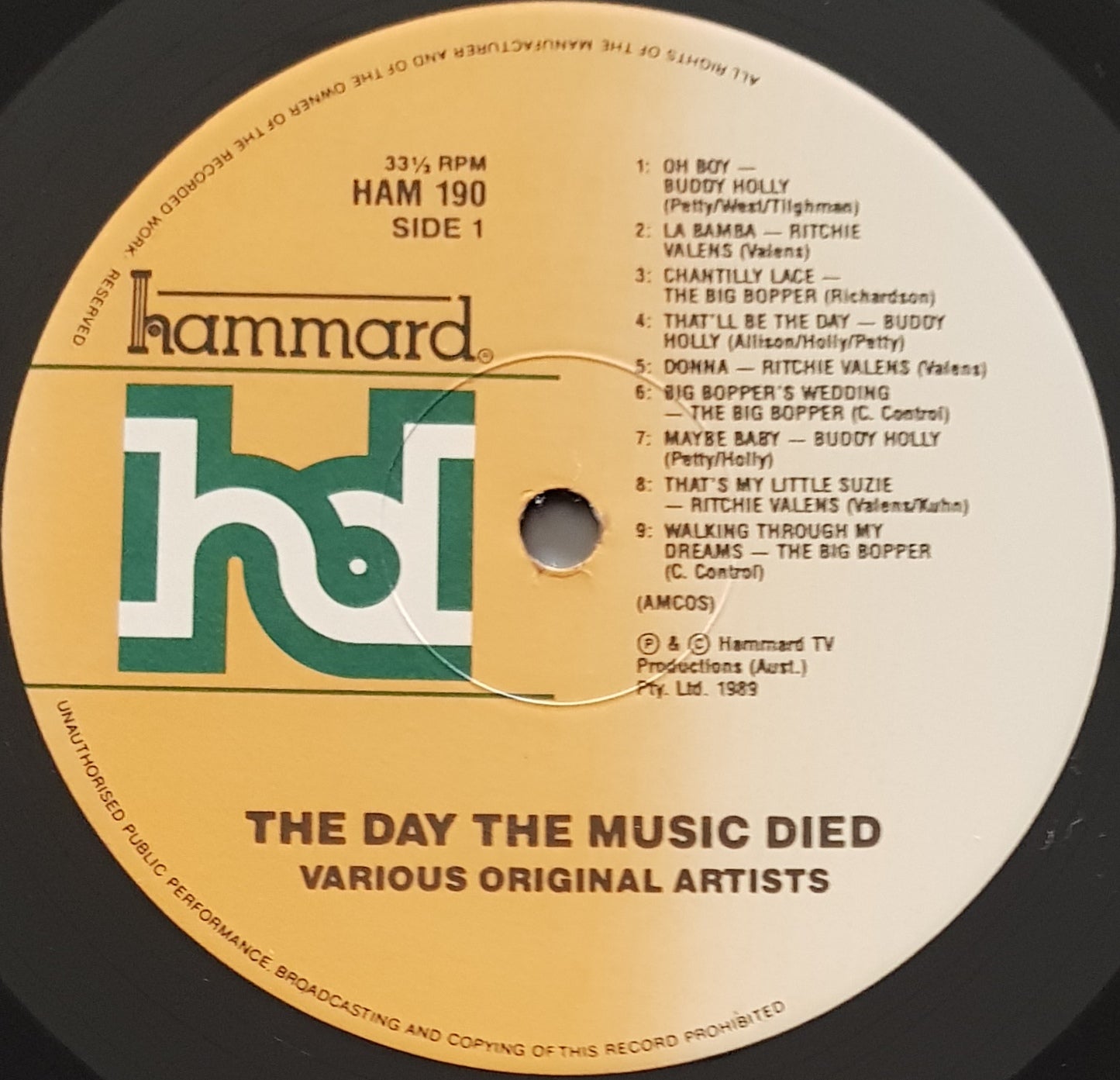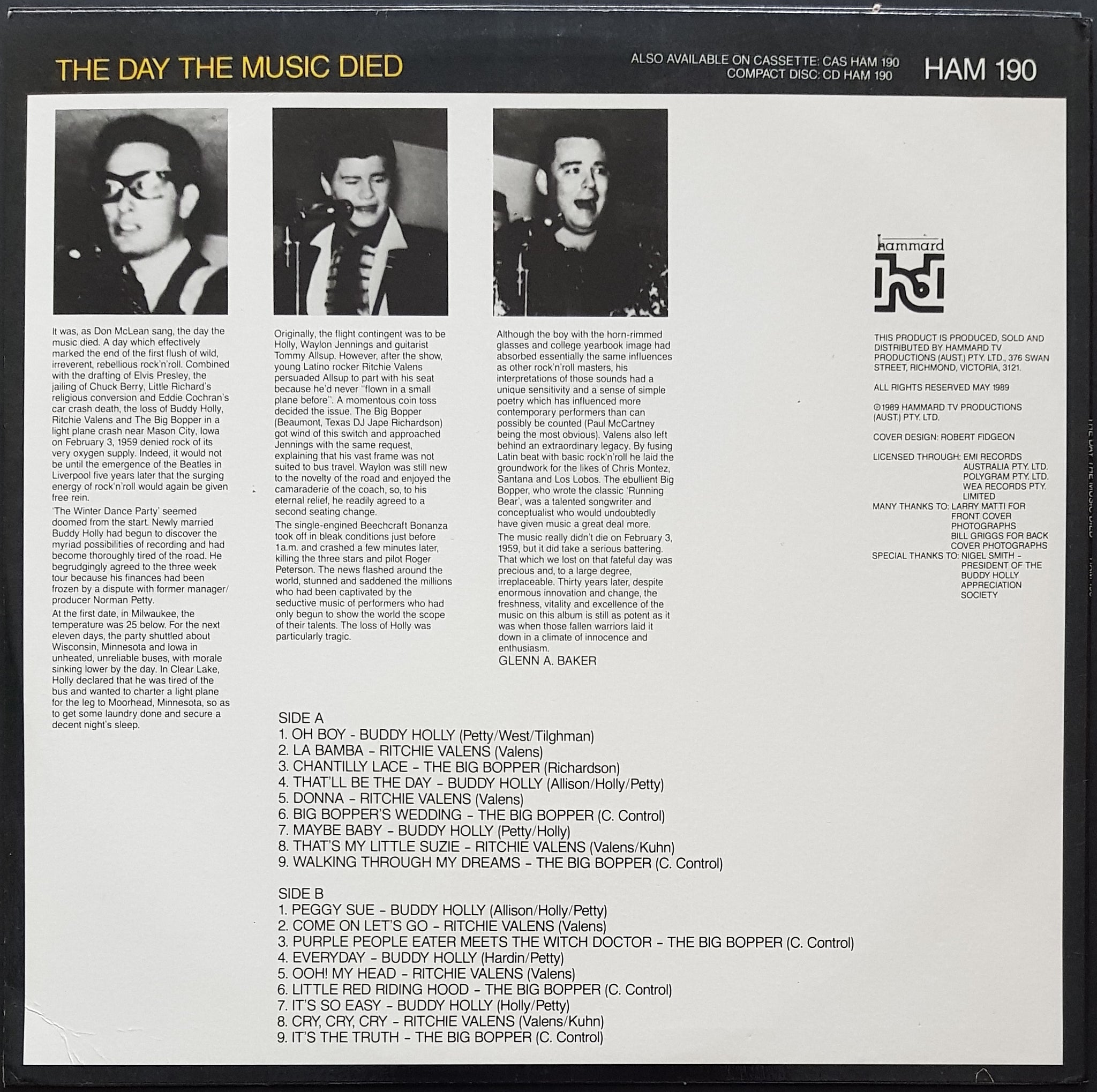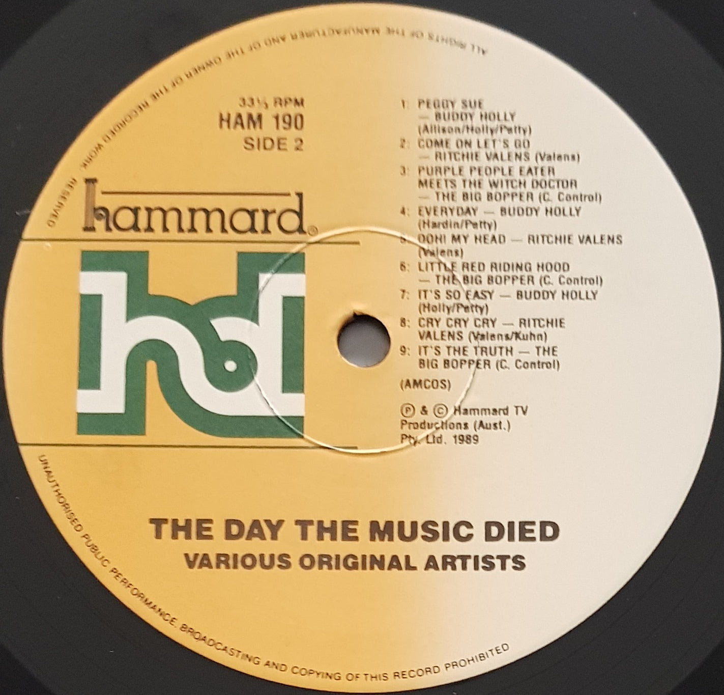Compilation Of Holly, Valens & Big Bopper Tracks. Issued by TV Label HAMMARD. HAM190