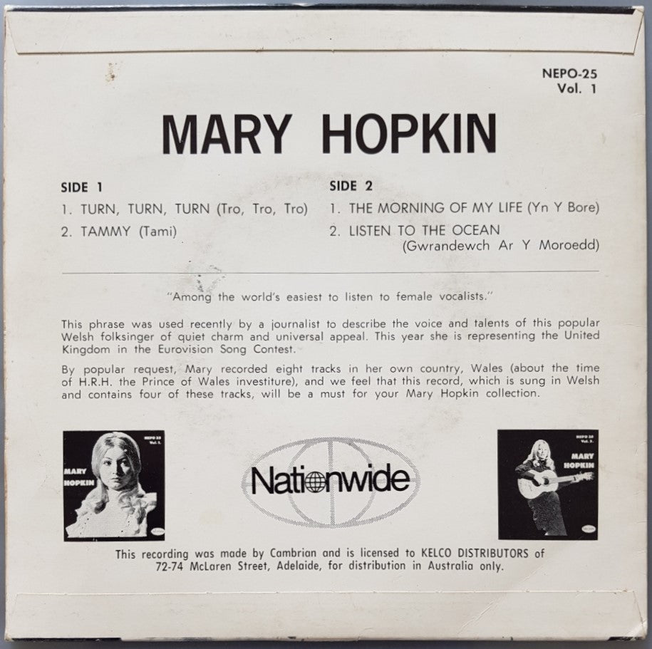 EP PS. Australian Only Release. 1971 NATIONWIDE NEPO-25. 4 Tracks Sung in Welsh. Small Writing on Cover