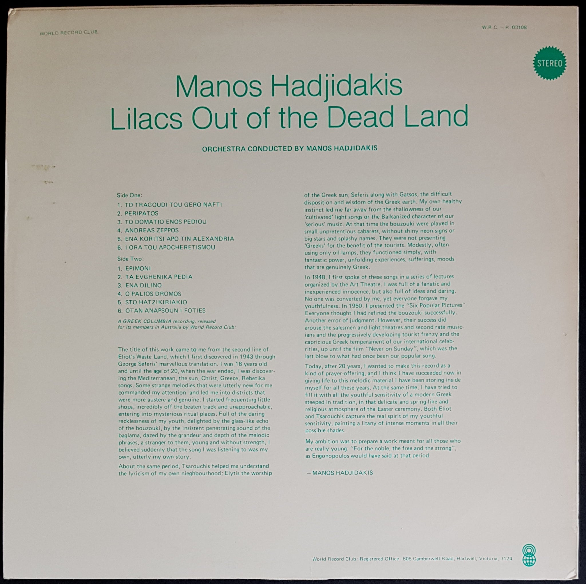Reissue w. Green & White Cover. 1981 World Record Club R-03108. Has address on back