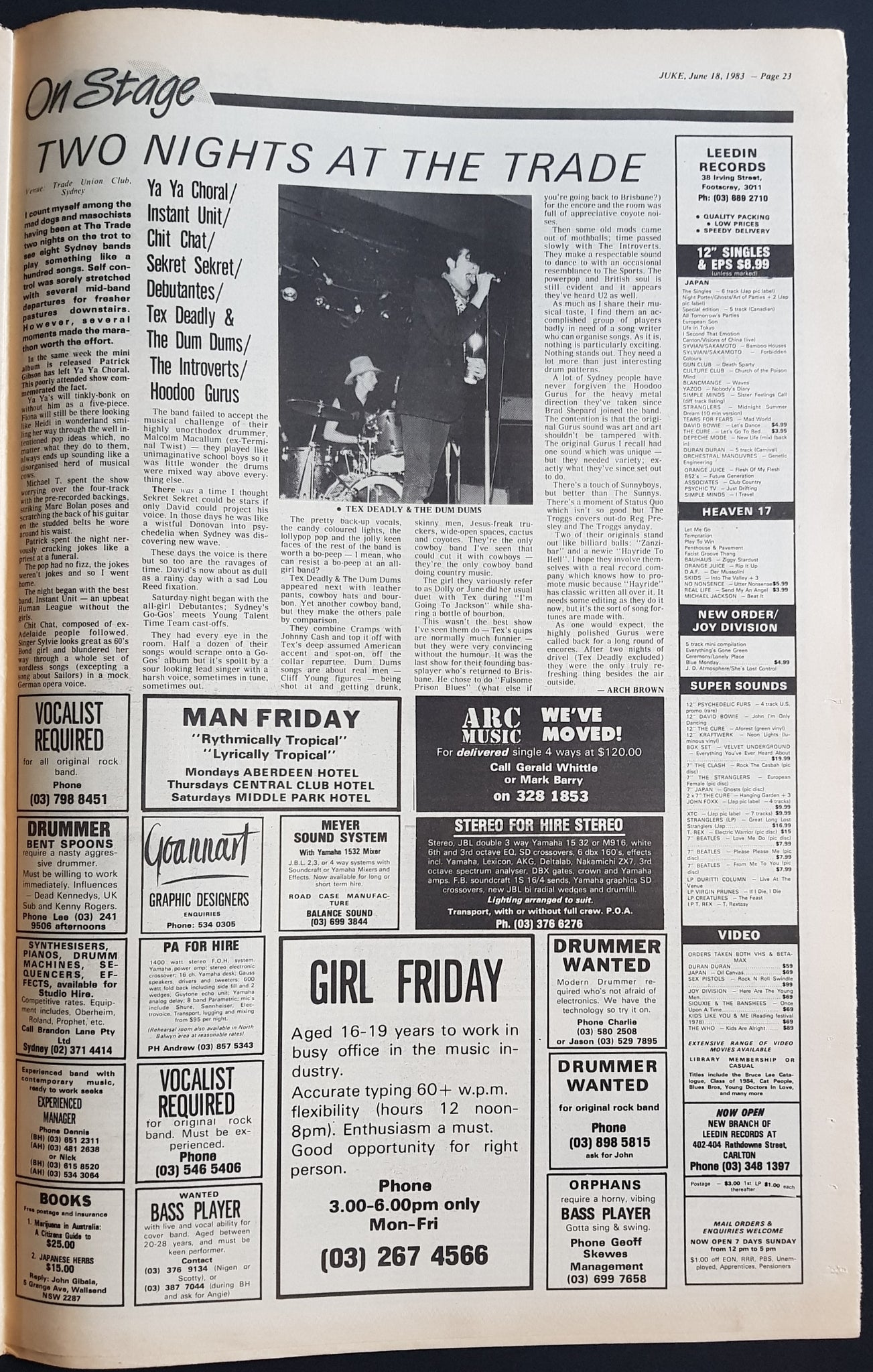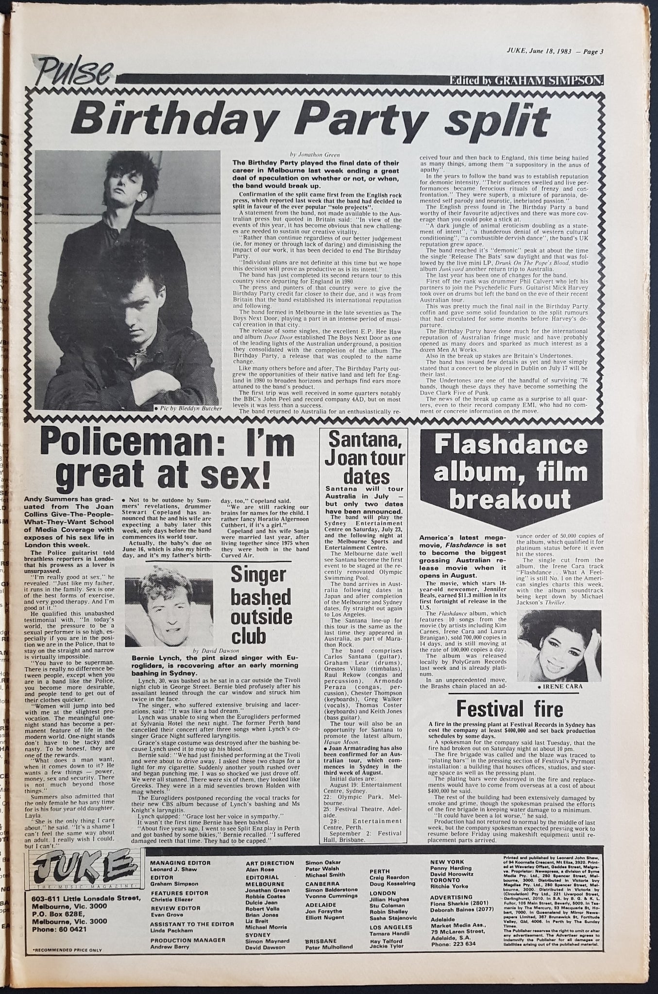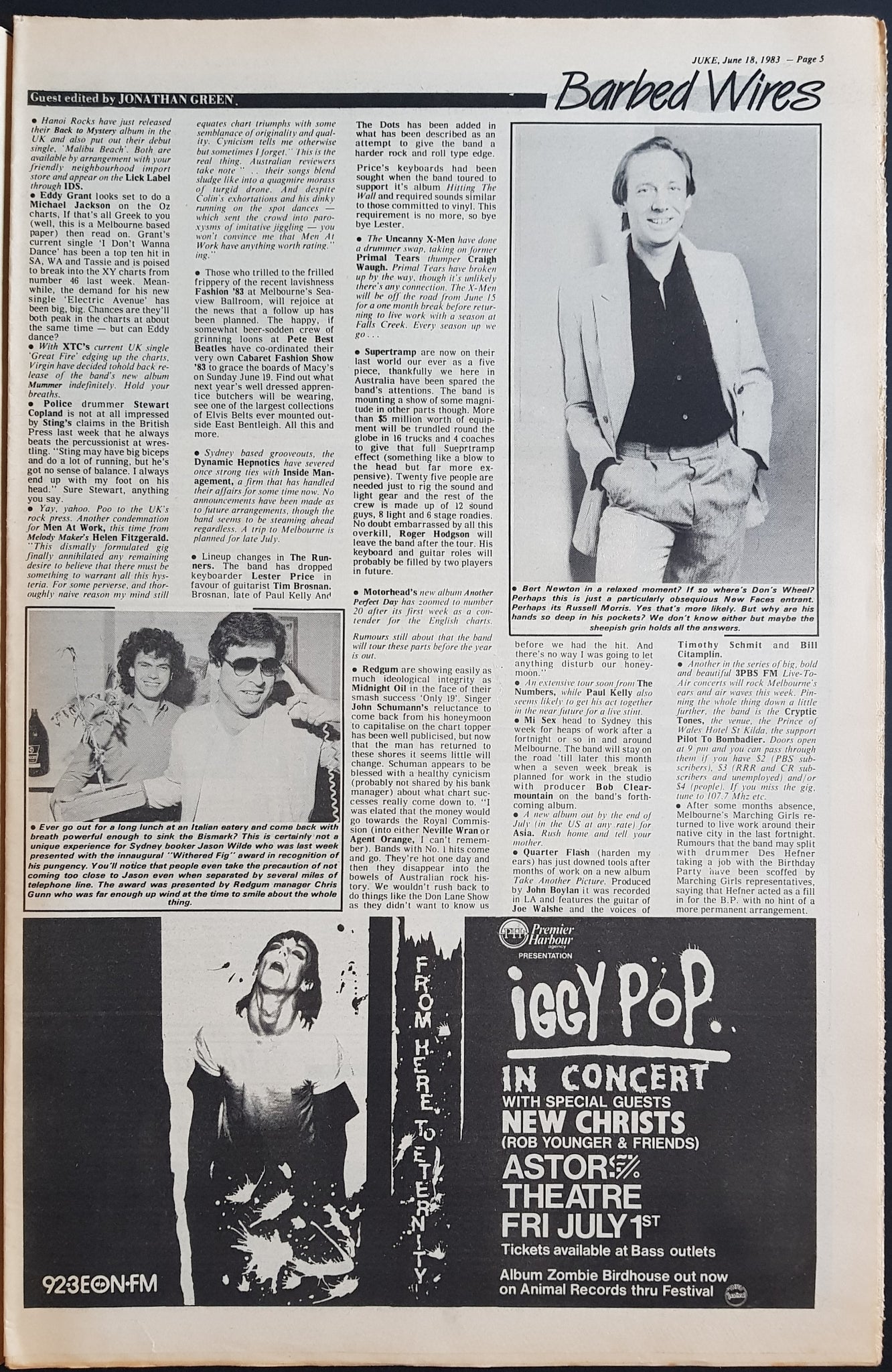 w. Rupert Cover & Article. Issue Also Features, Reviews And Or Has Ads for Birthday Party, Iggy Pop, Ya Ya Choral, Hanoi Rocks, Rush, Tex Deadly, Hoodoo Gurus + Others.