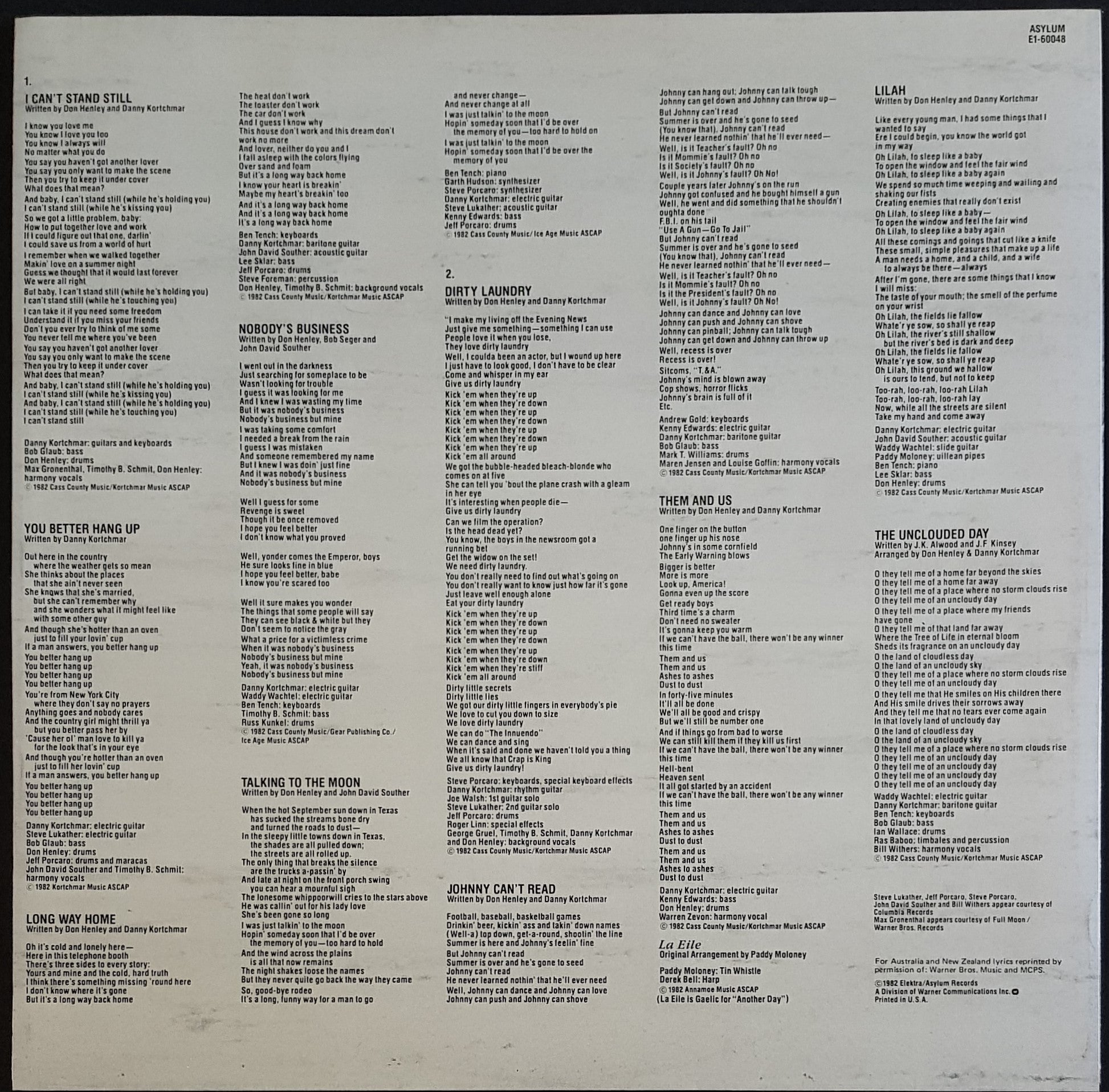 w.Inner Sleeve. 1983 Asylum Records E1-60048