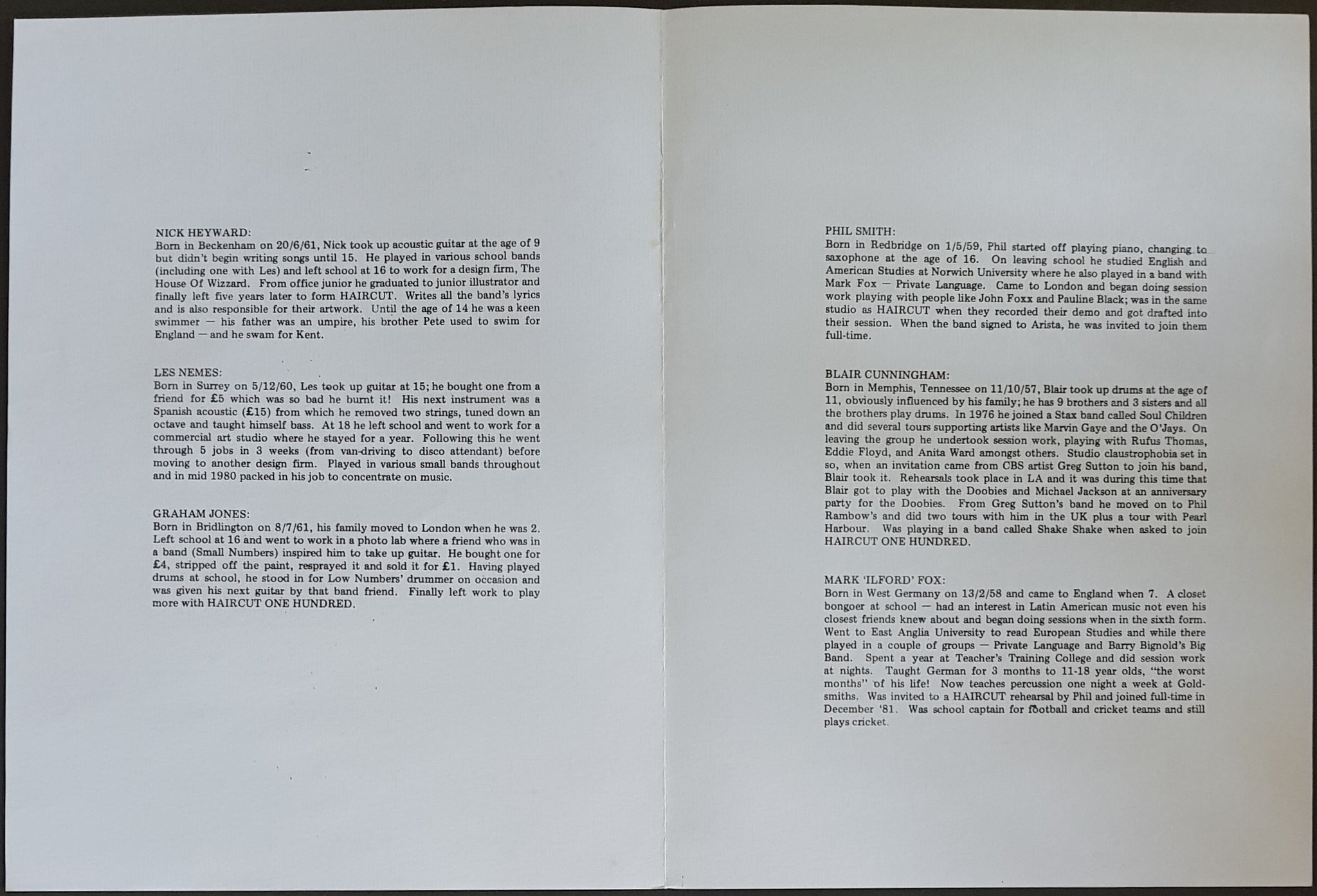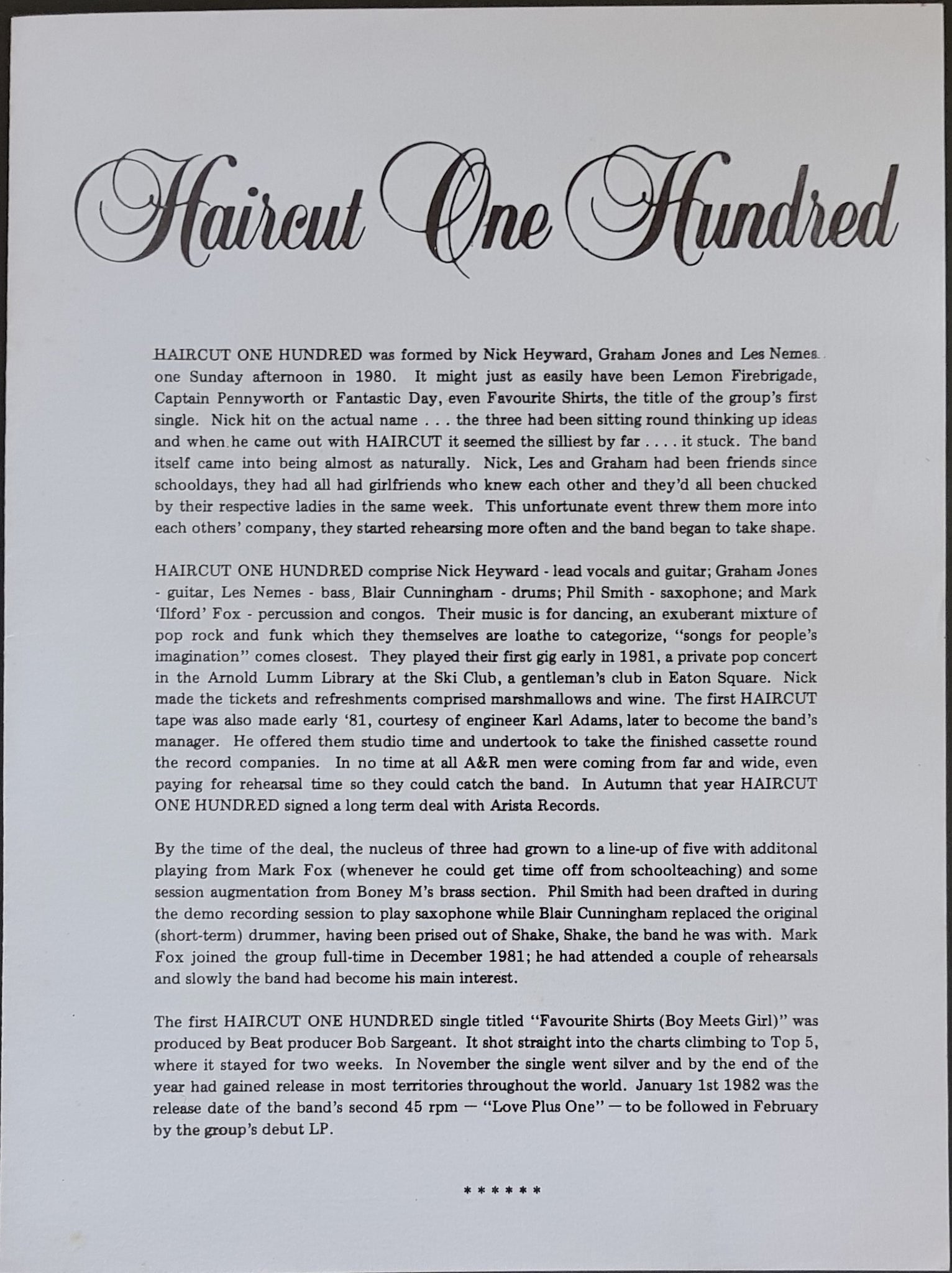 1982 Arista L37772. Minor wear and creases on cover. Comes with 4p. Arista / Festival records promo Bio + Spring 1982, Tour Program (VG+ has foxing)