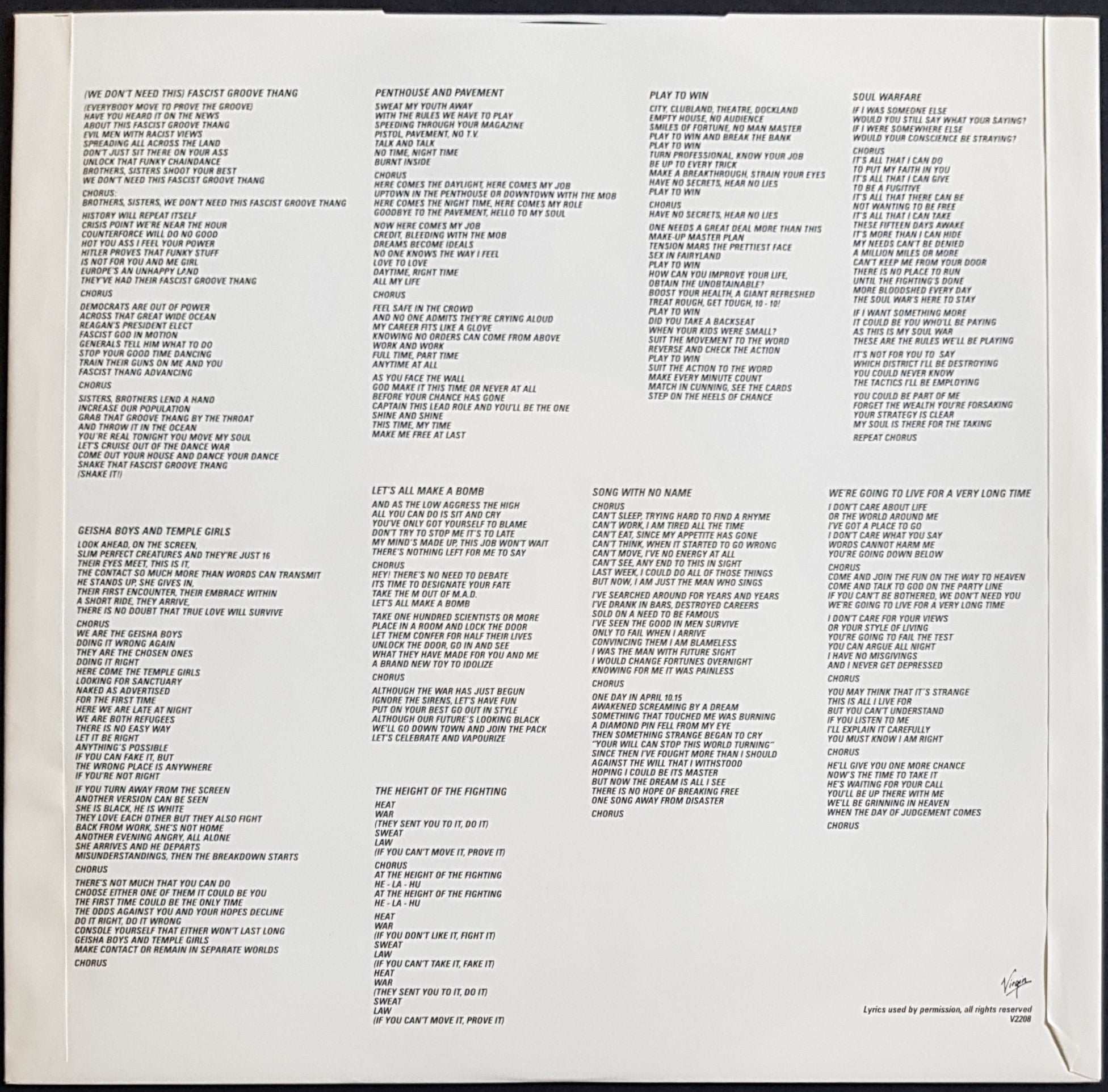 w.Inner Sleeve. 1981 Virgin V2208. Small Corner Crease on Cover