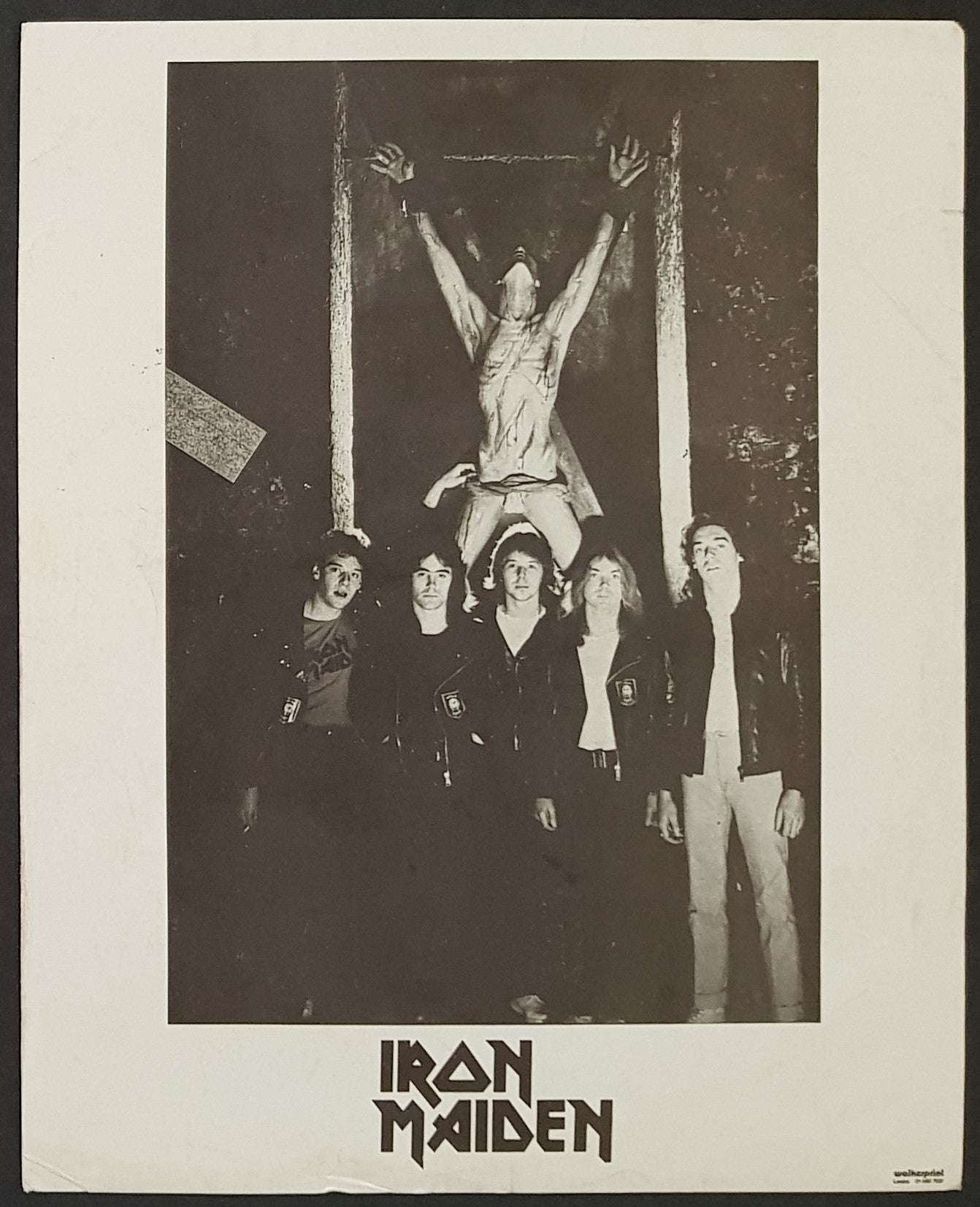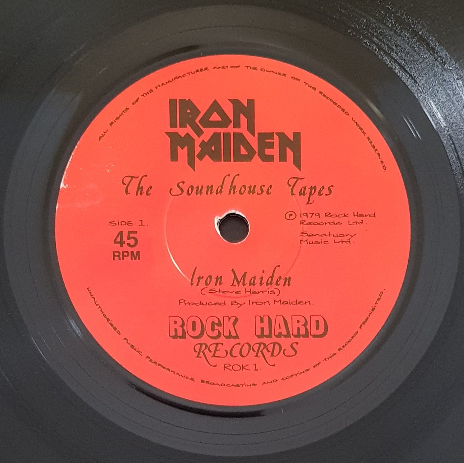 EP PS. Original 1979 Rock Hard Records ROK1 w. Red Labels. Picture Sleeve has corner crease, minor wear, small surface indentations and tiny bit of print removal on top left corner. The white spots next to the "M" are a minor print flaw, and not print removal. Very clean disc with the feintest of hairlines. Best we've had. Sold with original British Tour '80 Pin Button / Badge and 10"x8" Black & White "walkerprint" picture card (VG). All 3 purchased from Huddersfield Feb.1980 Show