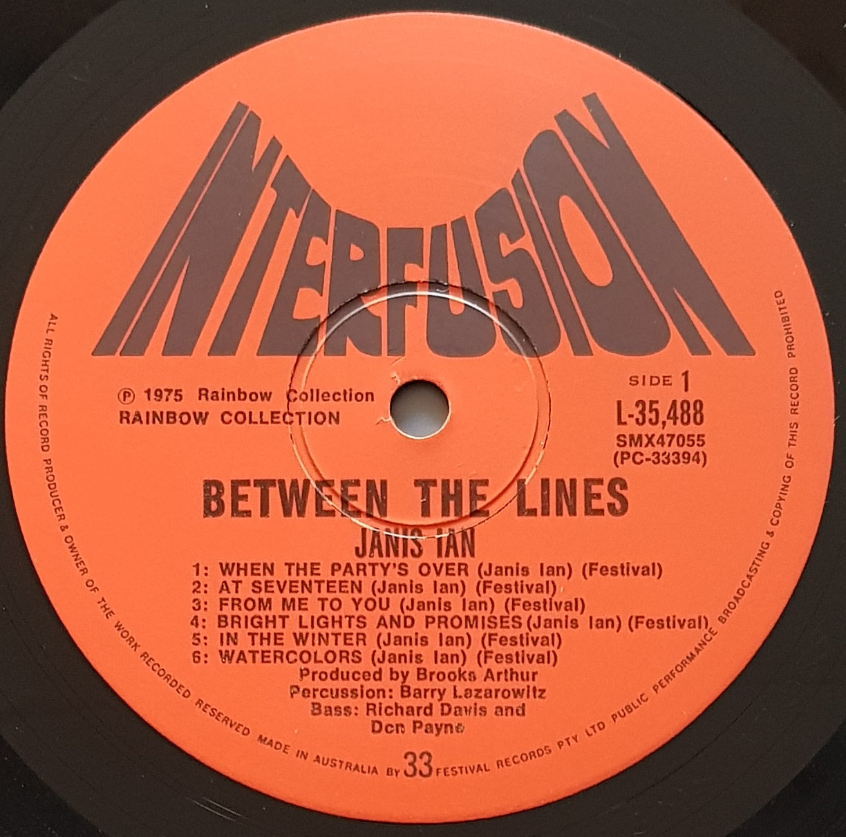 w.Inner. 1975 Red INTERFUSION Label L-35488. Small Writing on Back Cover