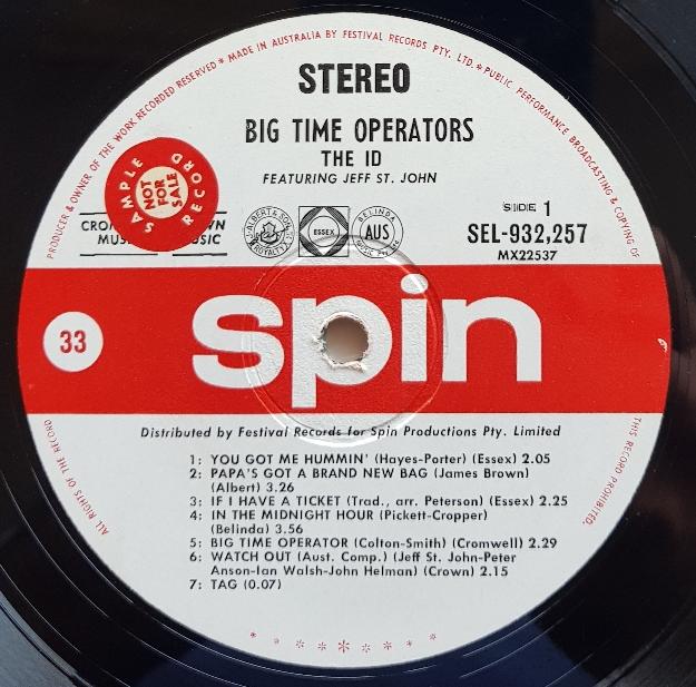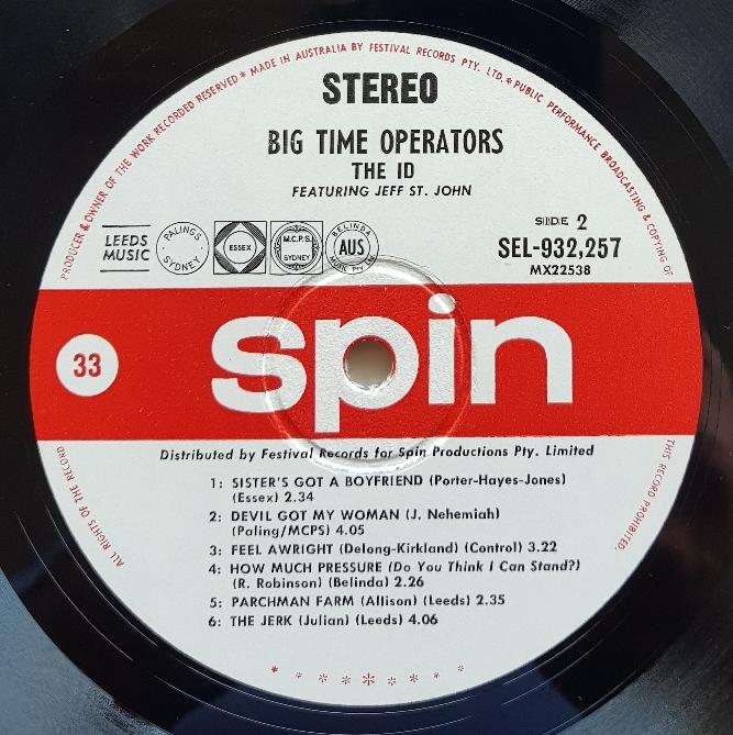 1967 Original SPIN Stereo Issue SEL-932,257. Features Jeff St.John. Cover has minor wear to laminate on front, minor foxing and corner crease on rear. Sample Record Sticker on Label.