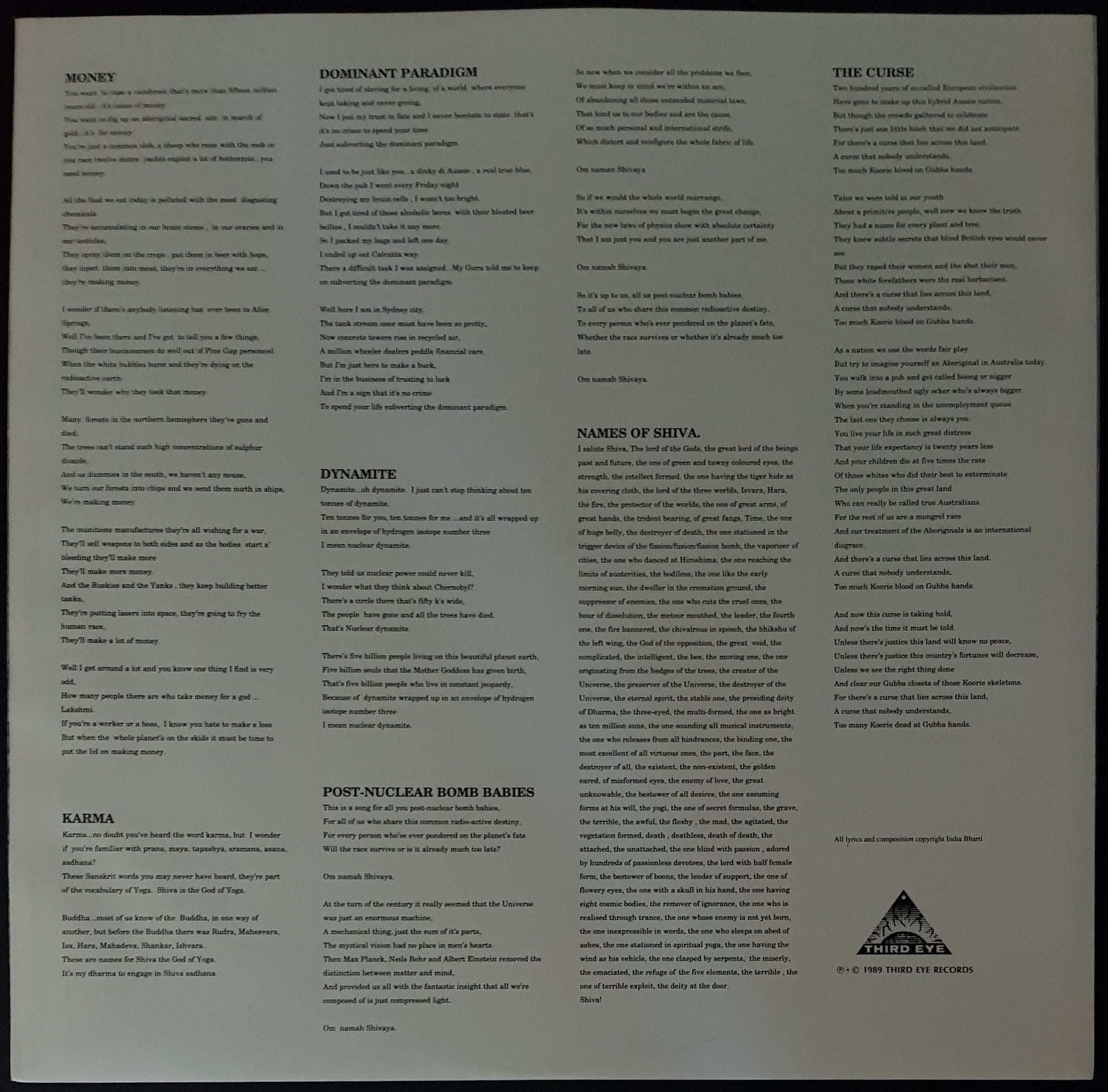 w.Inner Sleeve. 1989 Third Eye TRI LP8