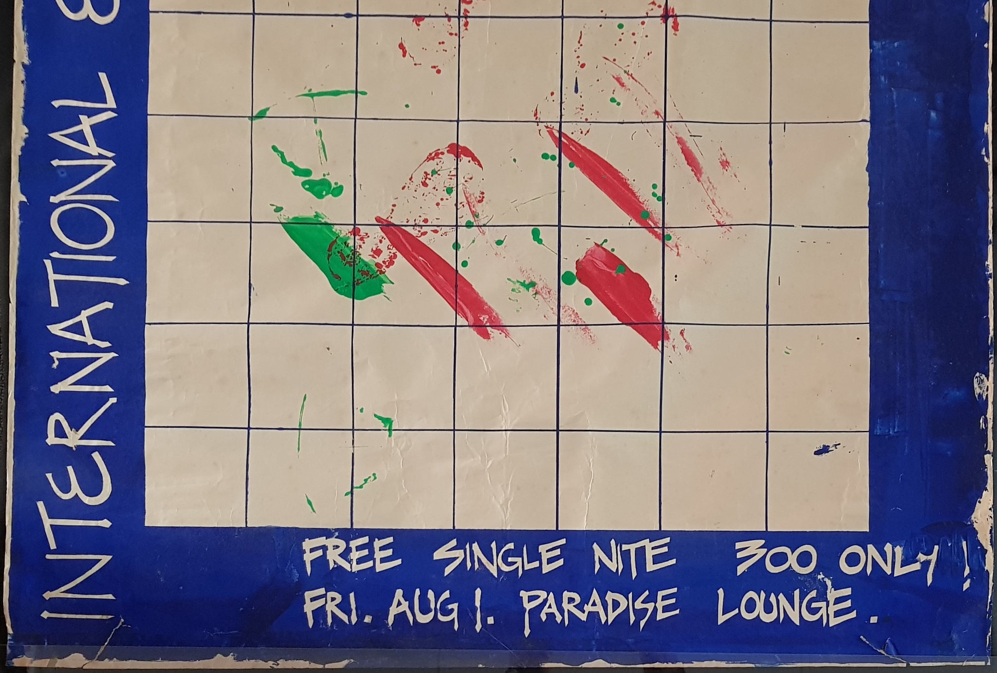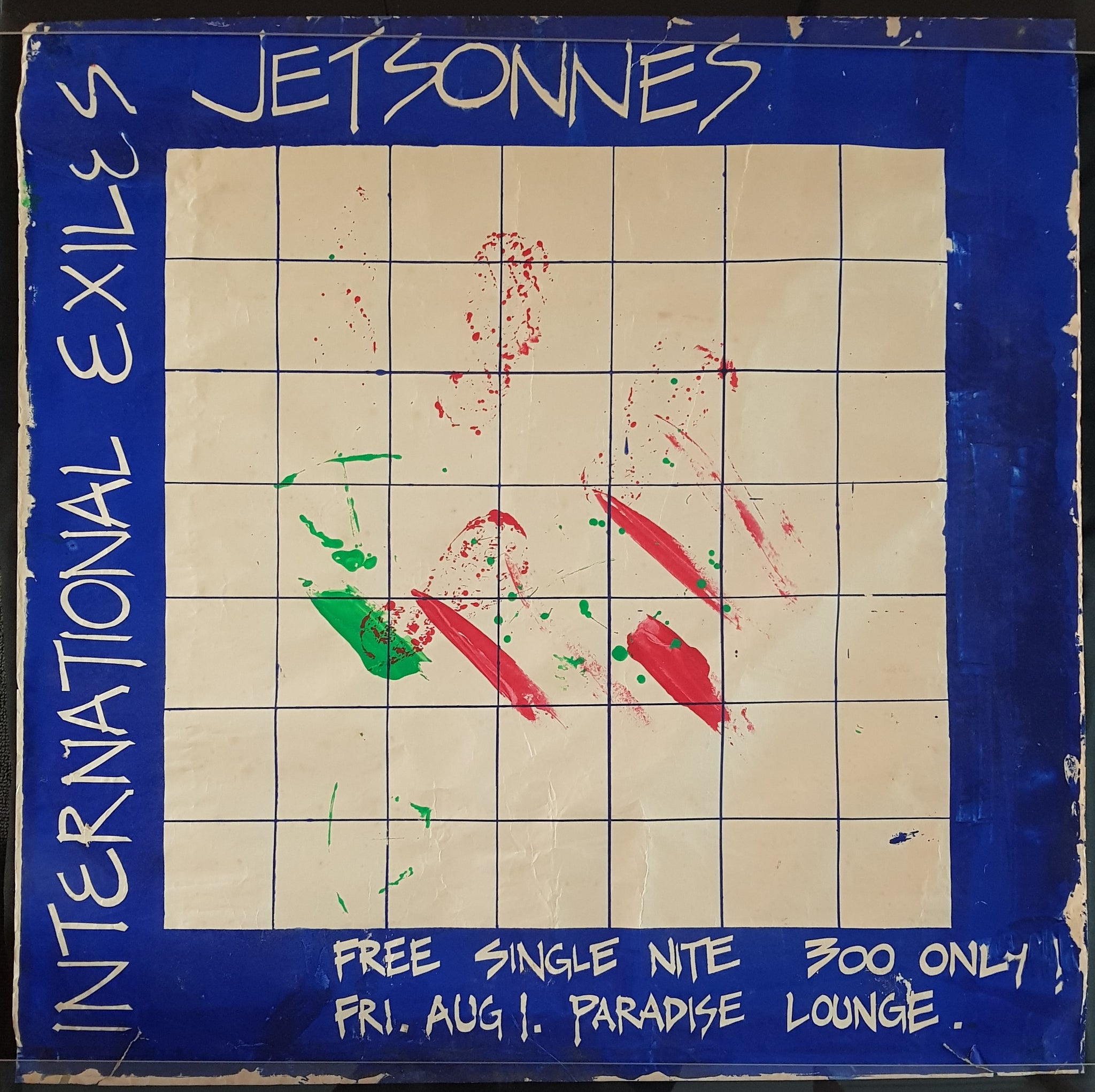 Screen Print For One-Off Gig Friday August 1, 1980 at The Paradise Lounge w. The Jetsonnes (Pre Hunters & Collectors). 76cm x 76cm. Small tears, creases and tape stains.