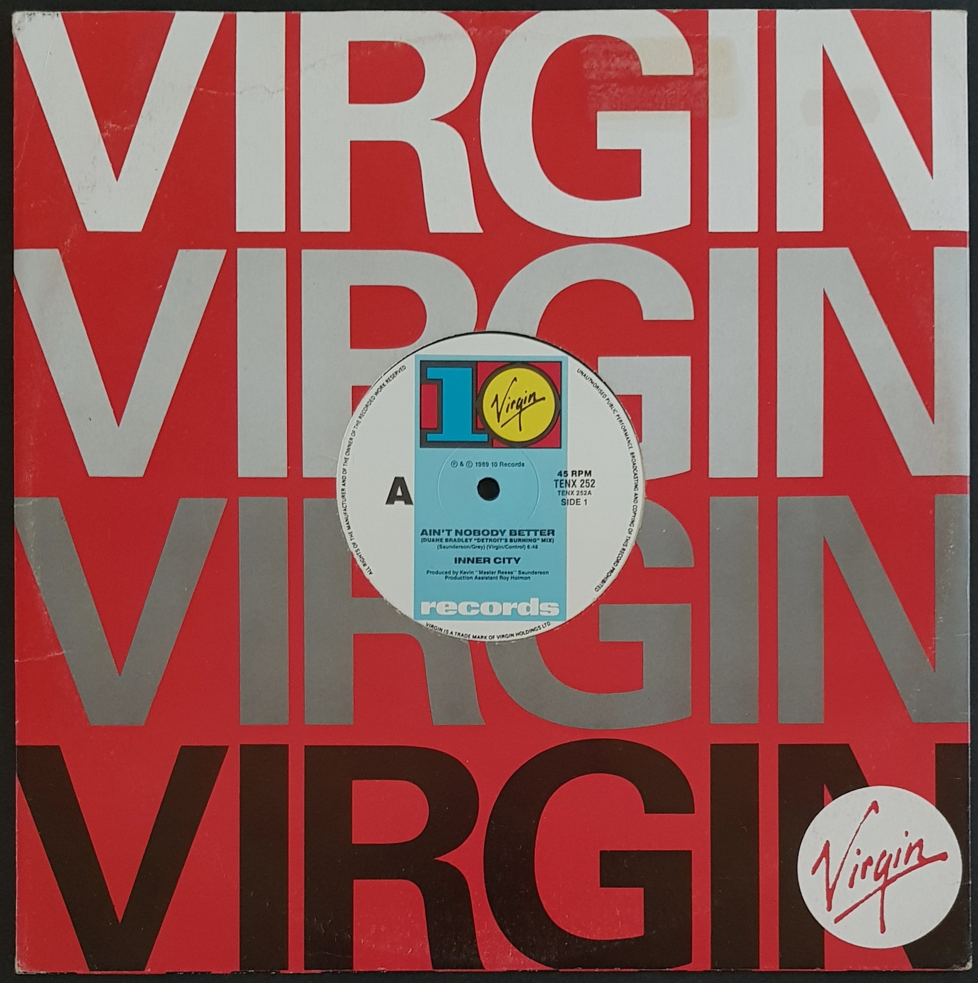 1989 10 / Virgin TENX 252. Generic Virgin Records Cover is G.