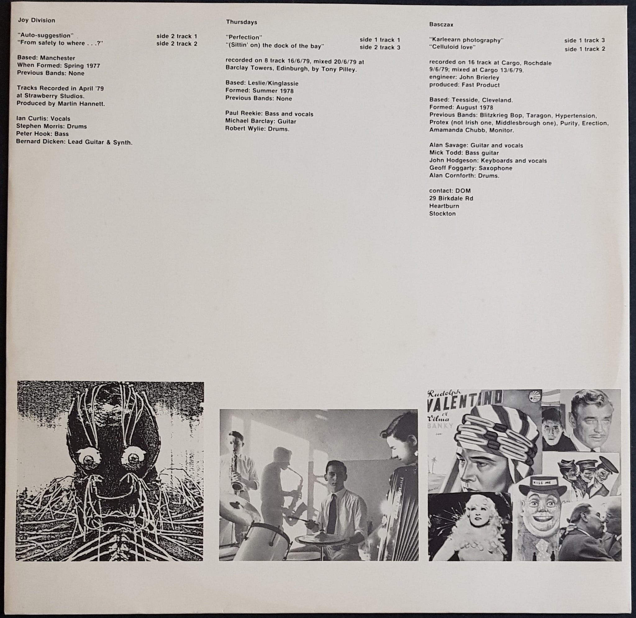 PS w.Inner Sleeve. 1979 Fast Product FAST 9b. 12" features 2 tracks each from Joy Division, Thursdays & Basczax. Imported into Australia at the time. Has Cool Special Import Shrink Wrap. 3 Corners are Creased