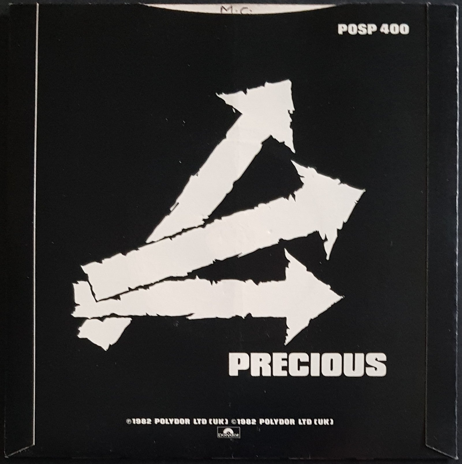 PS. Silver Injection Moulded Label. 1982 Polydor POSP 400. Sleeve has ben folded in half. Minor creases at opening of sleeve, which has light ring impression from disc. Small writing on back cover & on label. Small mark on A side will tick