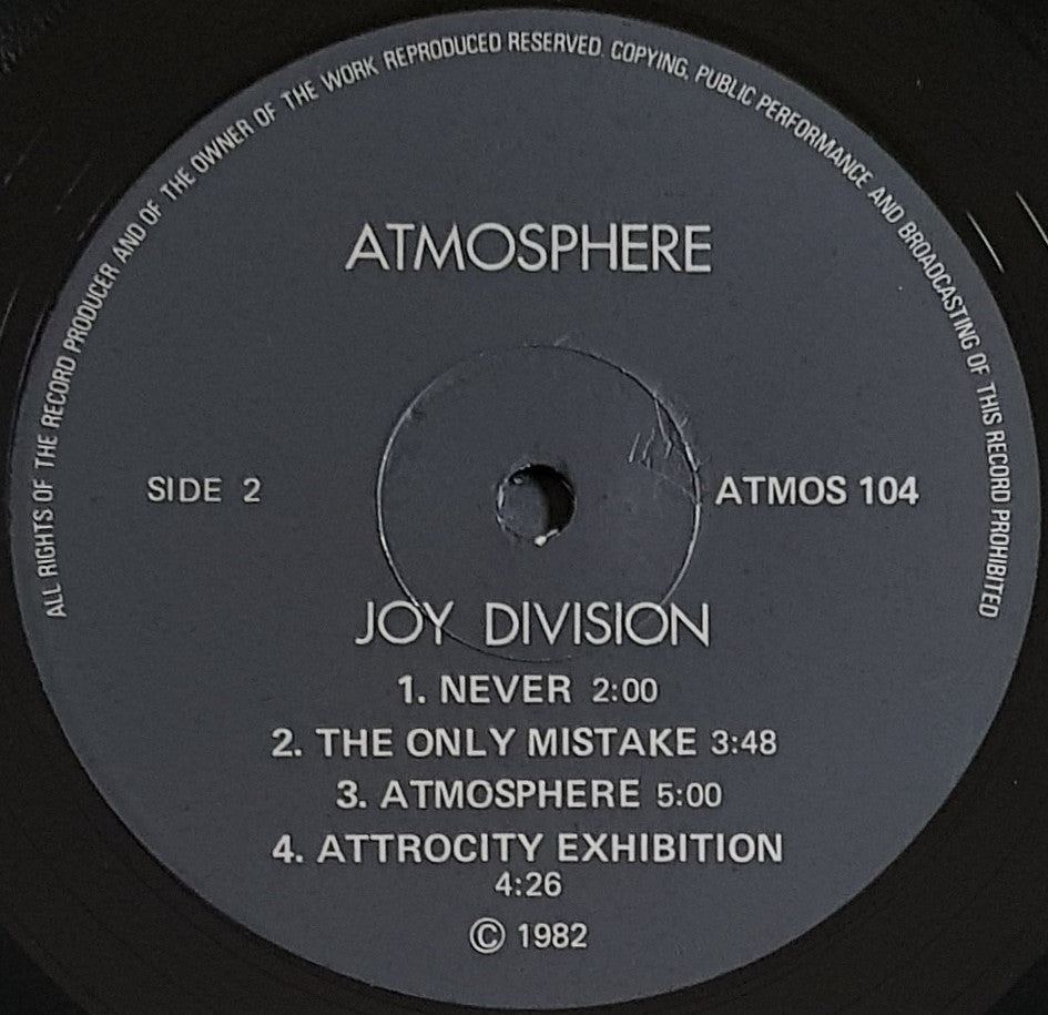 1982 ATMOS 104. Laminated Cover. Black & Silver Printed Labels. "Transmission" sessions at Central studios - Manchester mid July 1979 & Piccadilly Radio session at Pennine studios - Manchester 4 June 1979