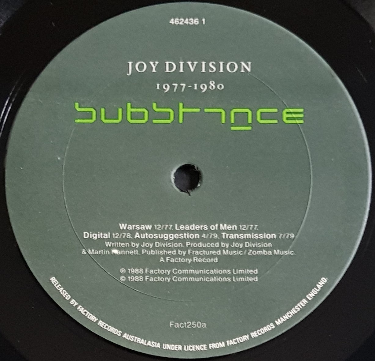 w.Inner Sleeve (Has Minor Foxing). 1988 Factory Records Australasia 462436 1. Minor creases on cover along spine and small price tag stain on front too.