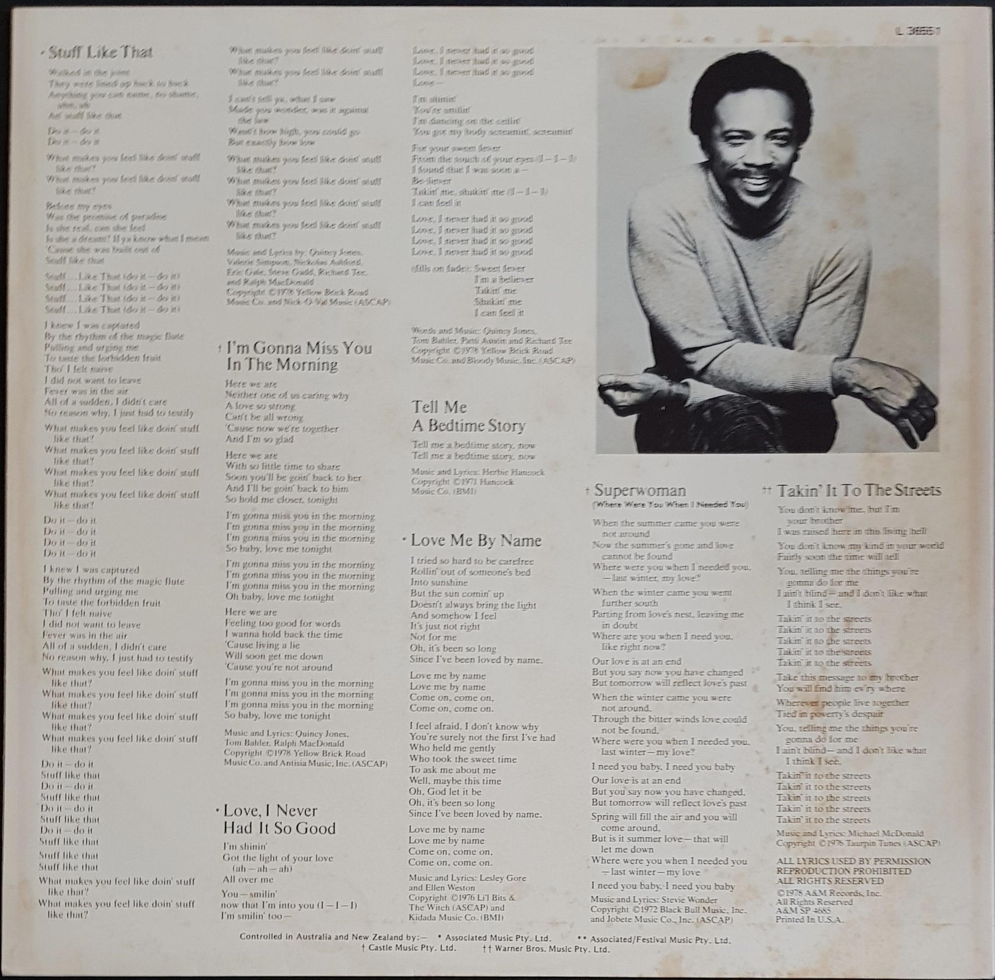 w.Inner Sleeve (Has Heavy Foxing and is VG). 1978 A&M Records L36551. Minor Ring & Surface Wear on Cover. Sample Record Sticker on Label.