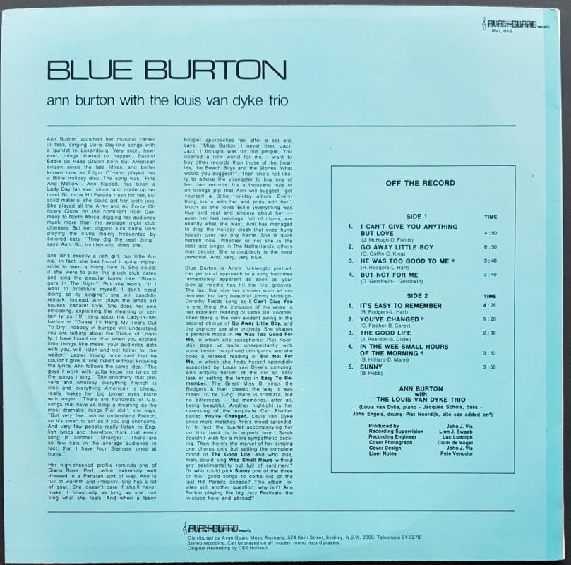 w.The Louis Van Dyke Trio. 1970 Avan-Guard BVL 016.