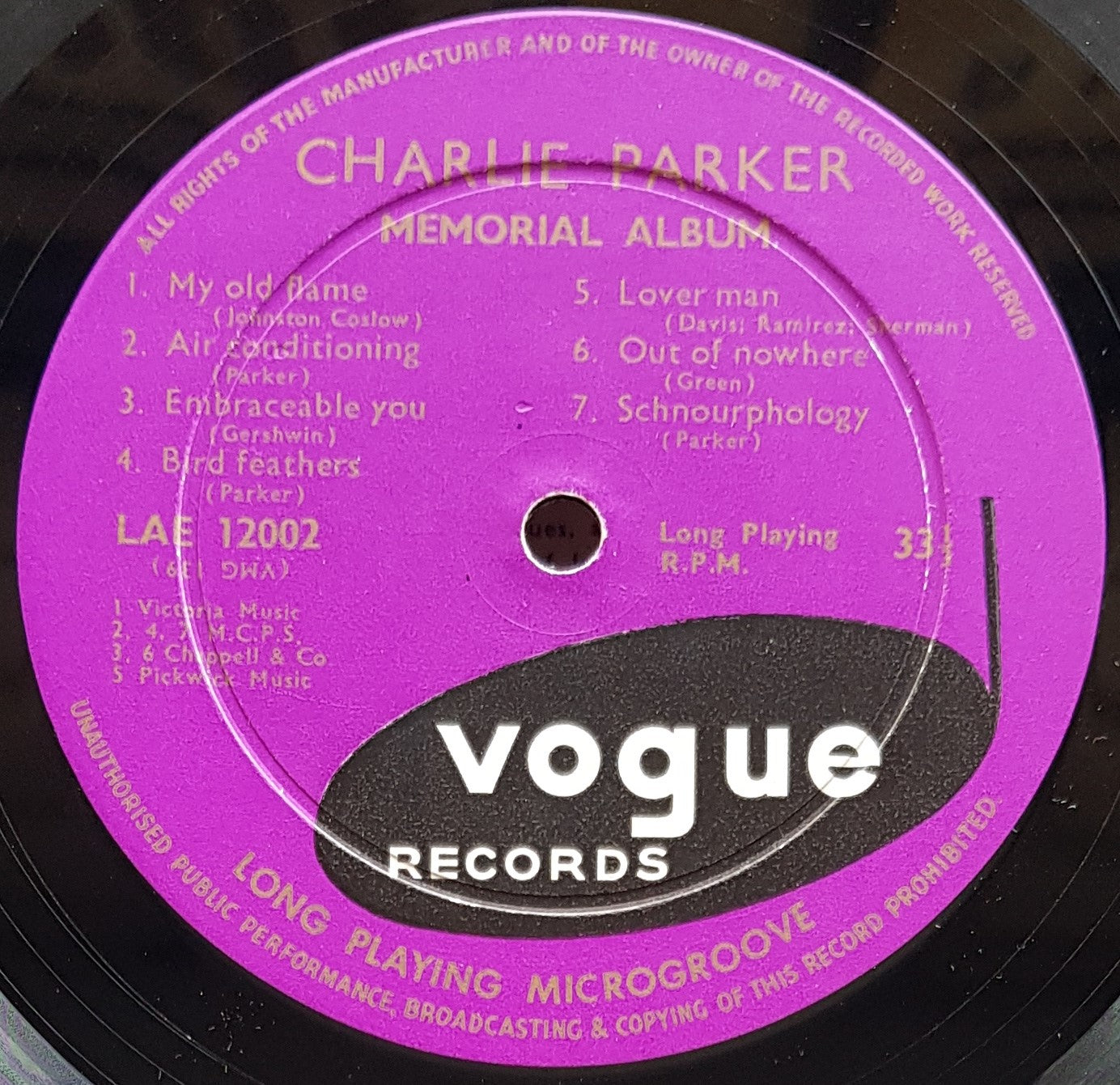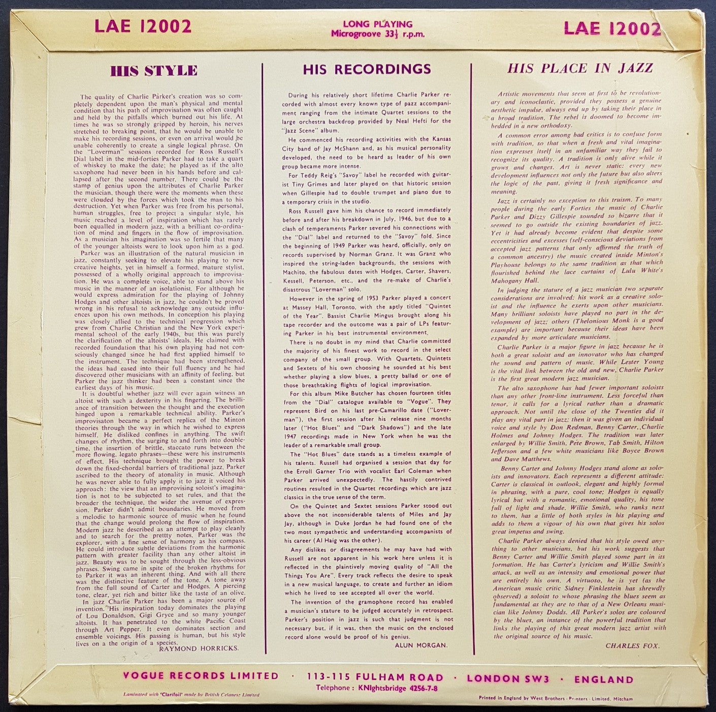 Gatefold Cover w.Insert & Photo. 1955 Vogue Records LAE 12002. Laminated finish on front has peeled in parts. Small tear along spine
