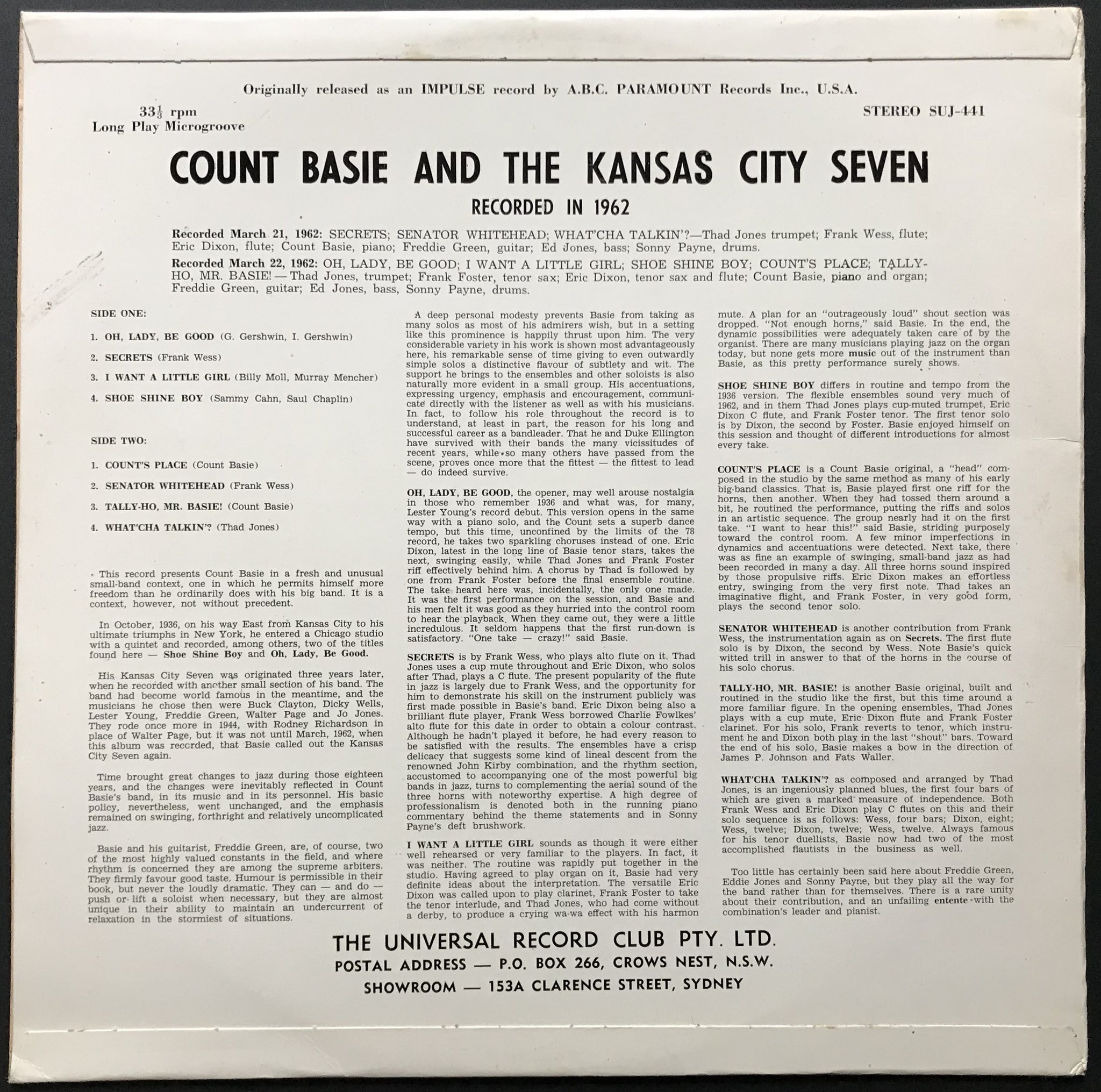 1963 Universal Record Club SUJ-441. Minor Ring Wear, Creases and Scuffing on Cover. Back is very clean. It's not trashed