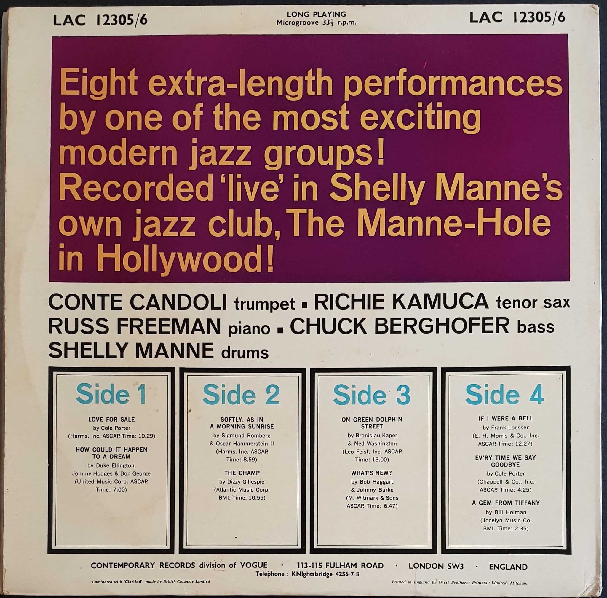 Gatefold Cover. 1961 Contemporary Records LACA 12305/6. Housed in Original UK Cover. Sample Stickers on Labels.