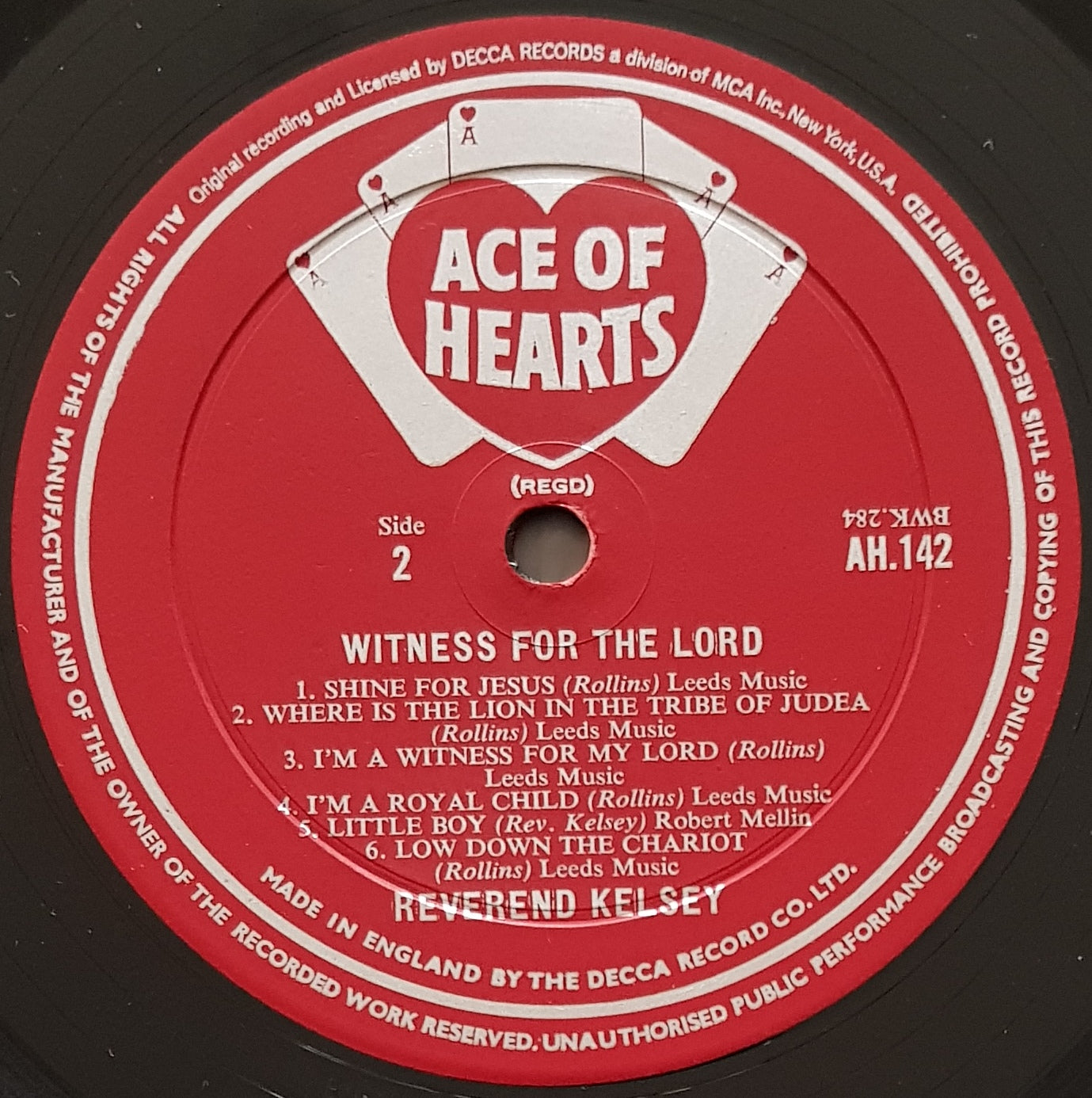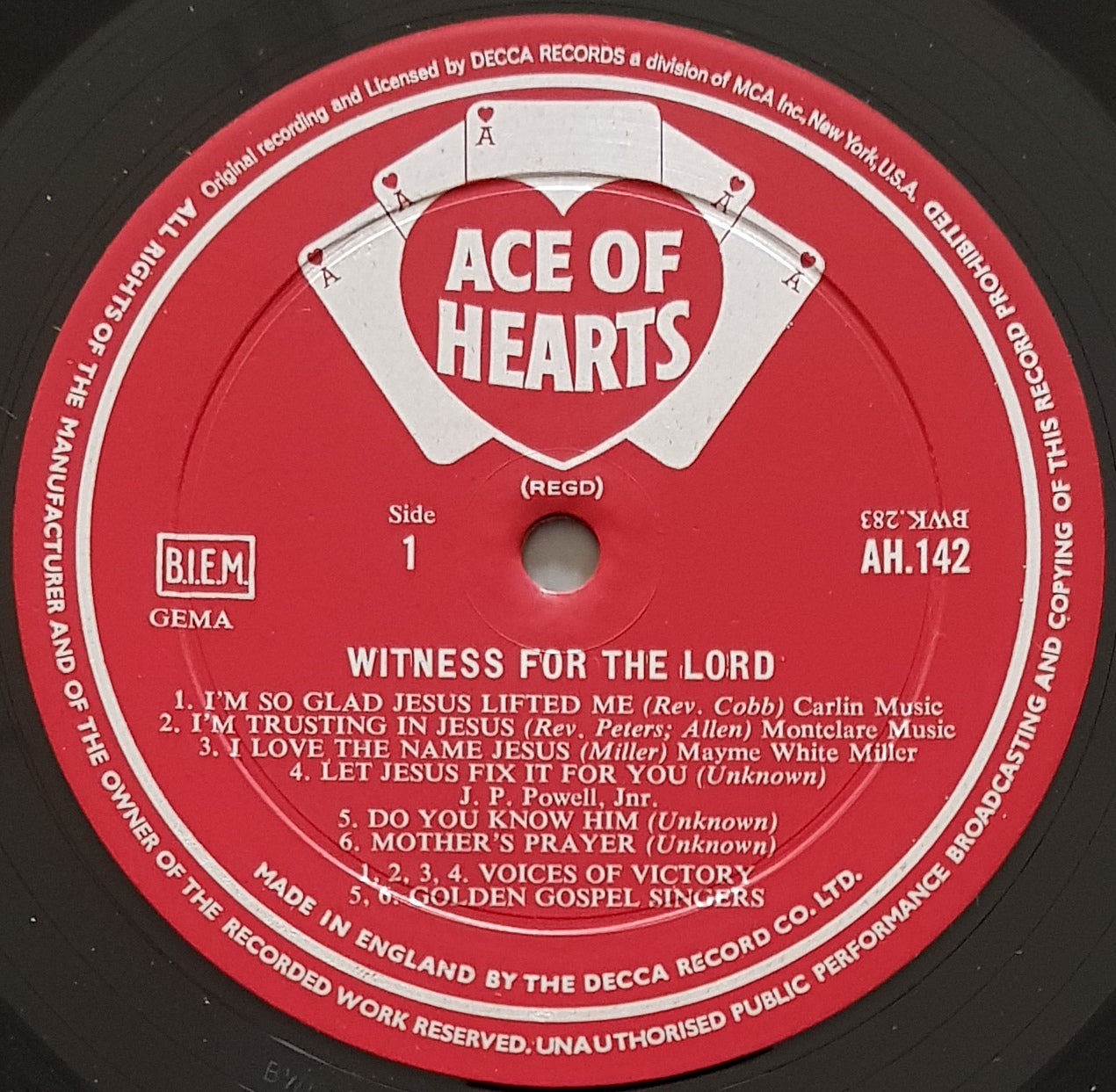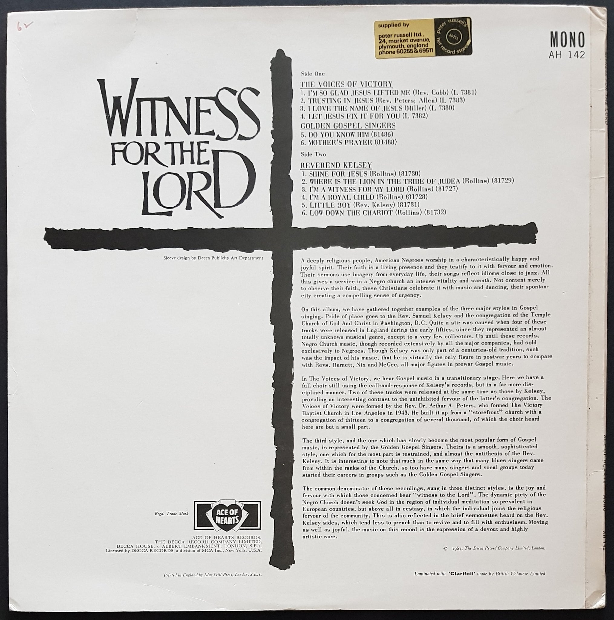 American Negro Gospel LP, 1967 ACE OF HEARTS AH142. Small Writing And Sticker on Back Cover