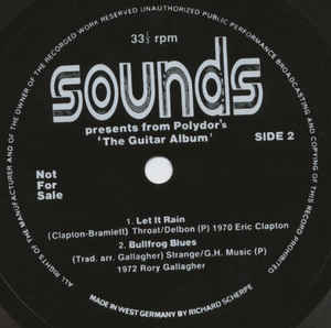 EP Promo Only Flexi Disc w. Sweet 16, plus tracks by John Entwhistle, Eric Clapton & Rory Gallagher.