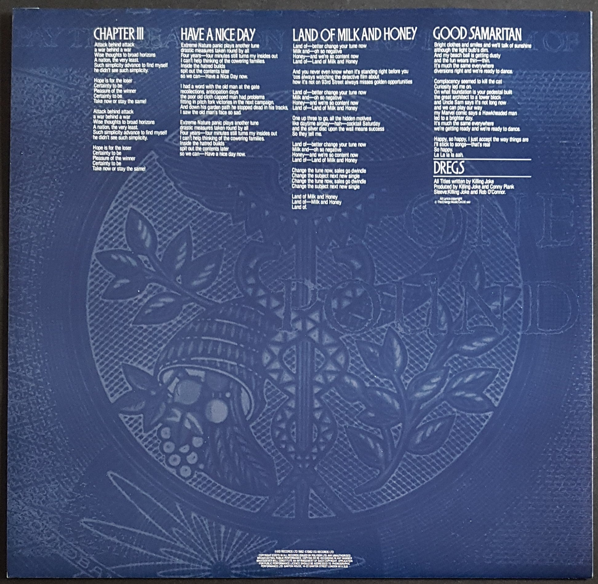 w.Inner Sleeve. 1982 EG /Malicious Damage EGMD3. Minor handling crease, edge wear and small tear at opening on back cover. Hairline on Side 2 causes a couple of ticks.