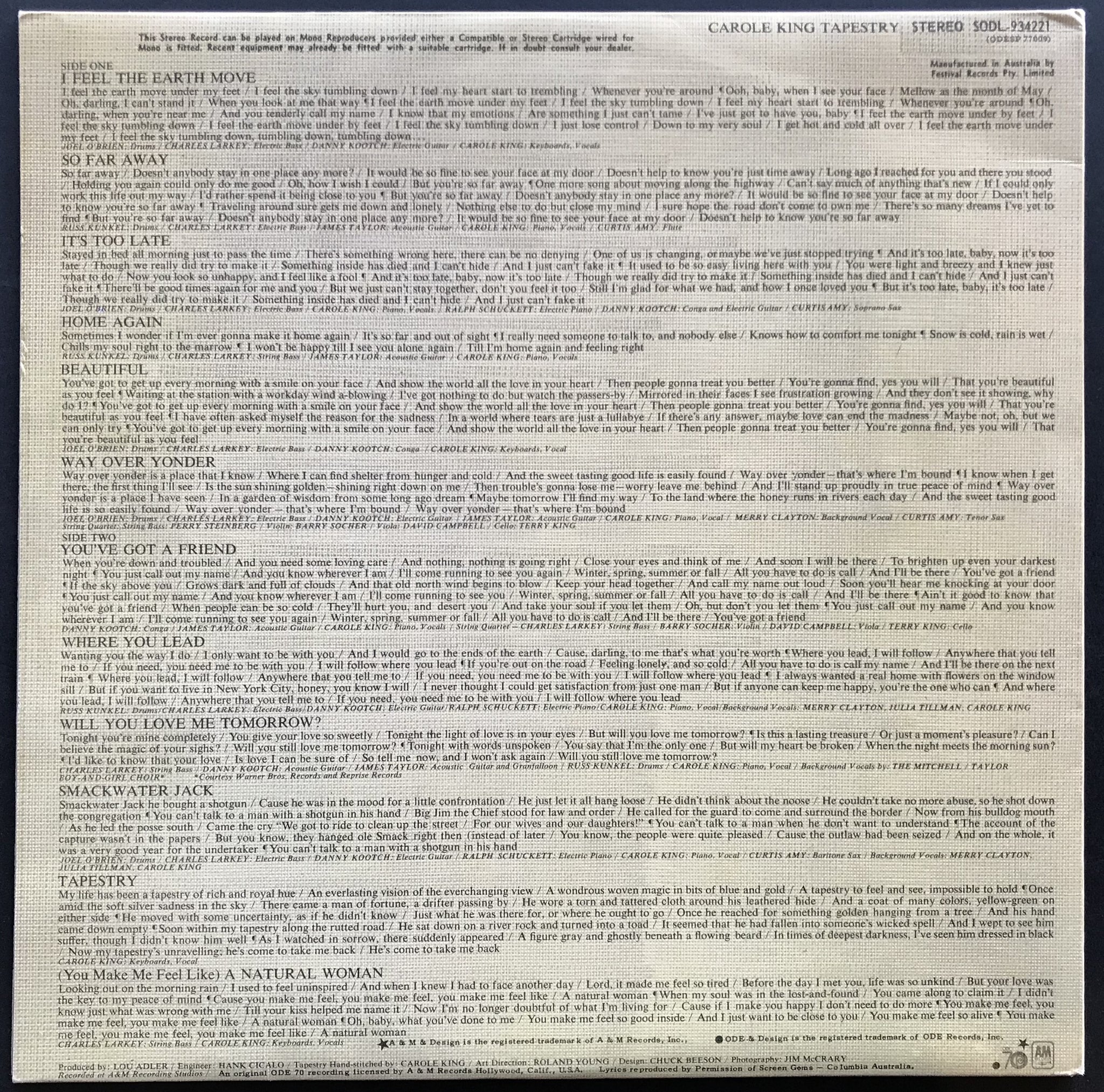 Textured Gatefold Cover. 1971 A&M Records SODL-934221. Minor edge wear on cover