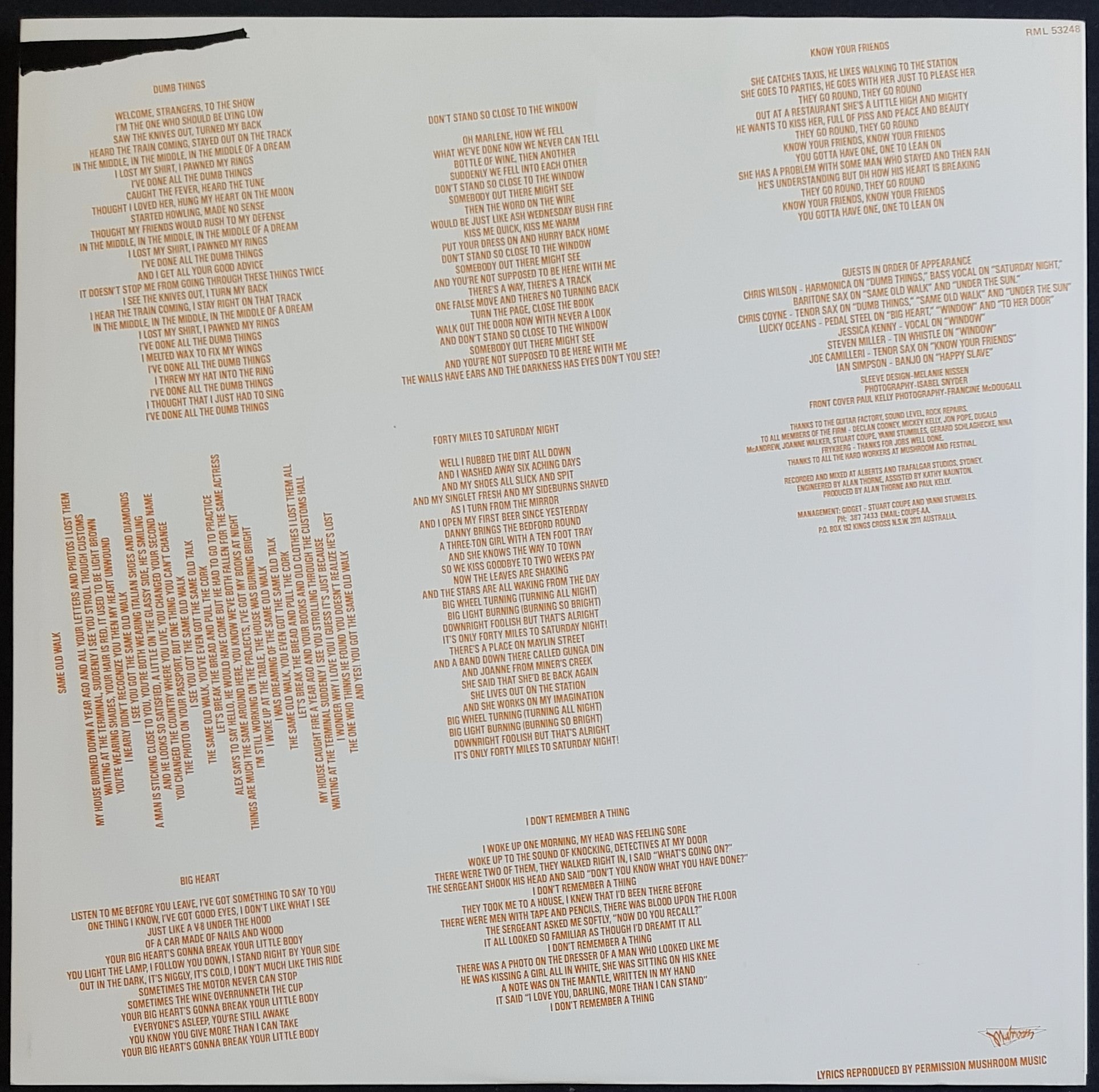 w.Inner Sleeve. 1987 Mushroom RML 53248. Creases on cover.