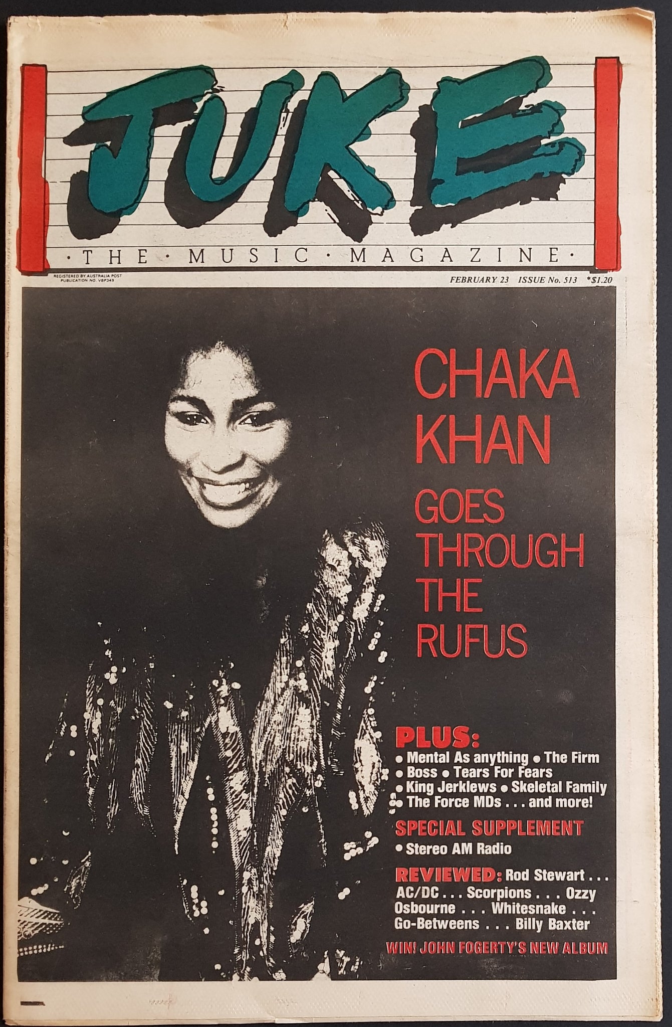 w. Chaka Cover & Article. Issue Also Features, Reviews And Or Has Ads For Mental As Anything, The Firm Jimmy Page, Boss, Twisted Sister + Others.