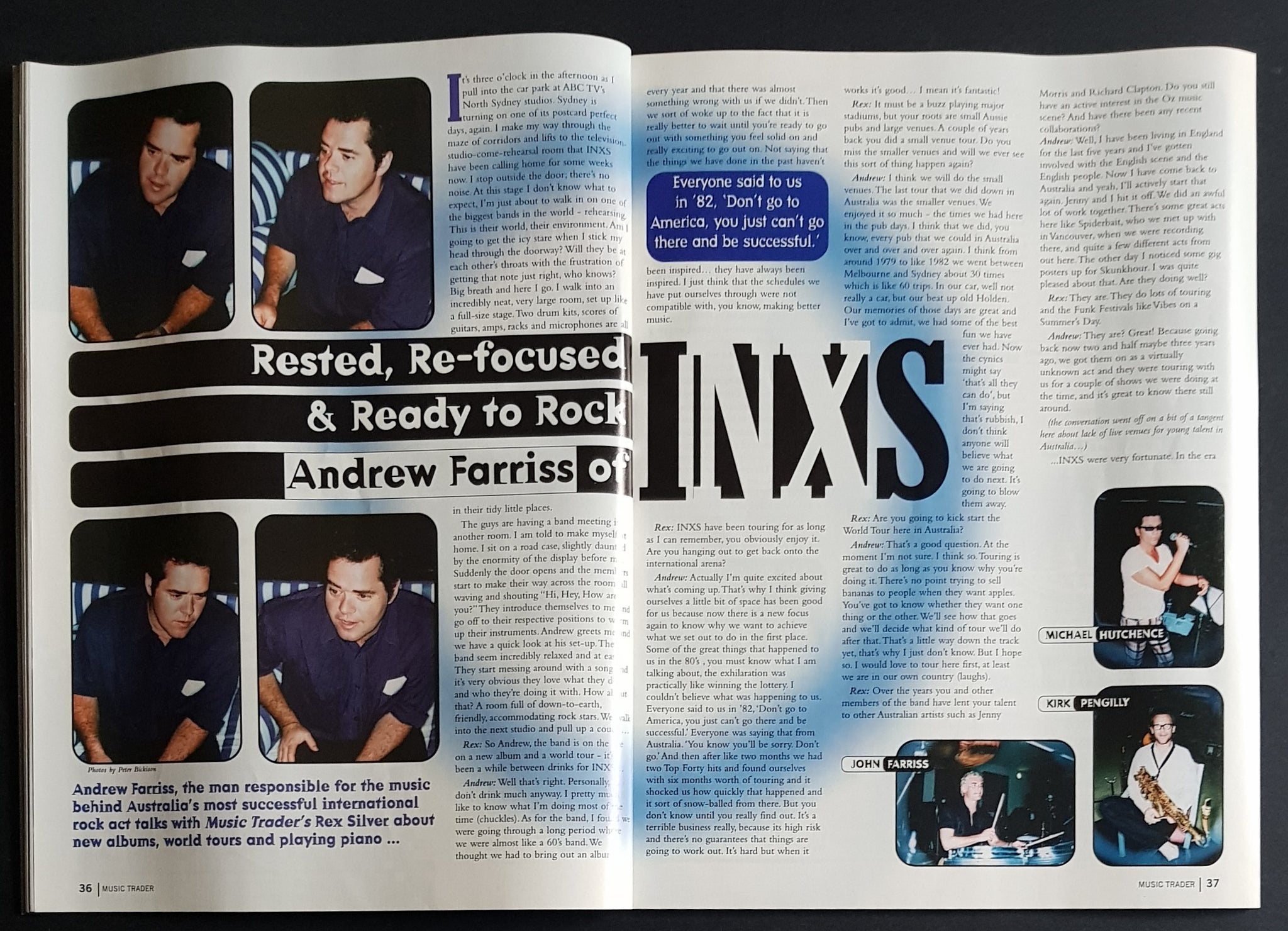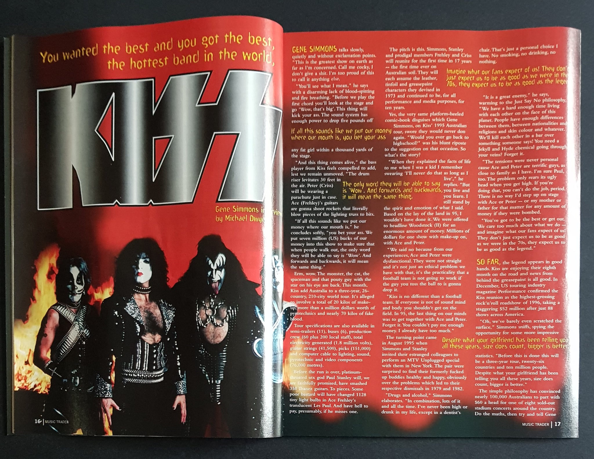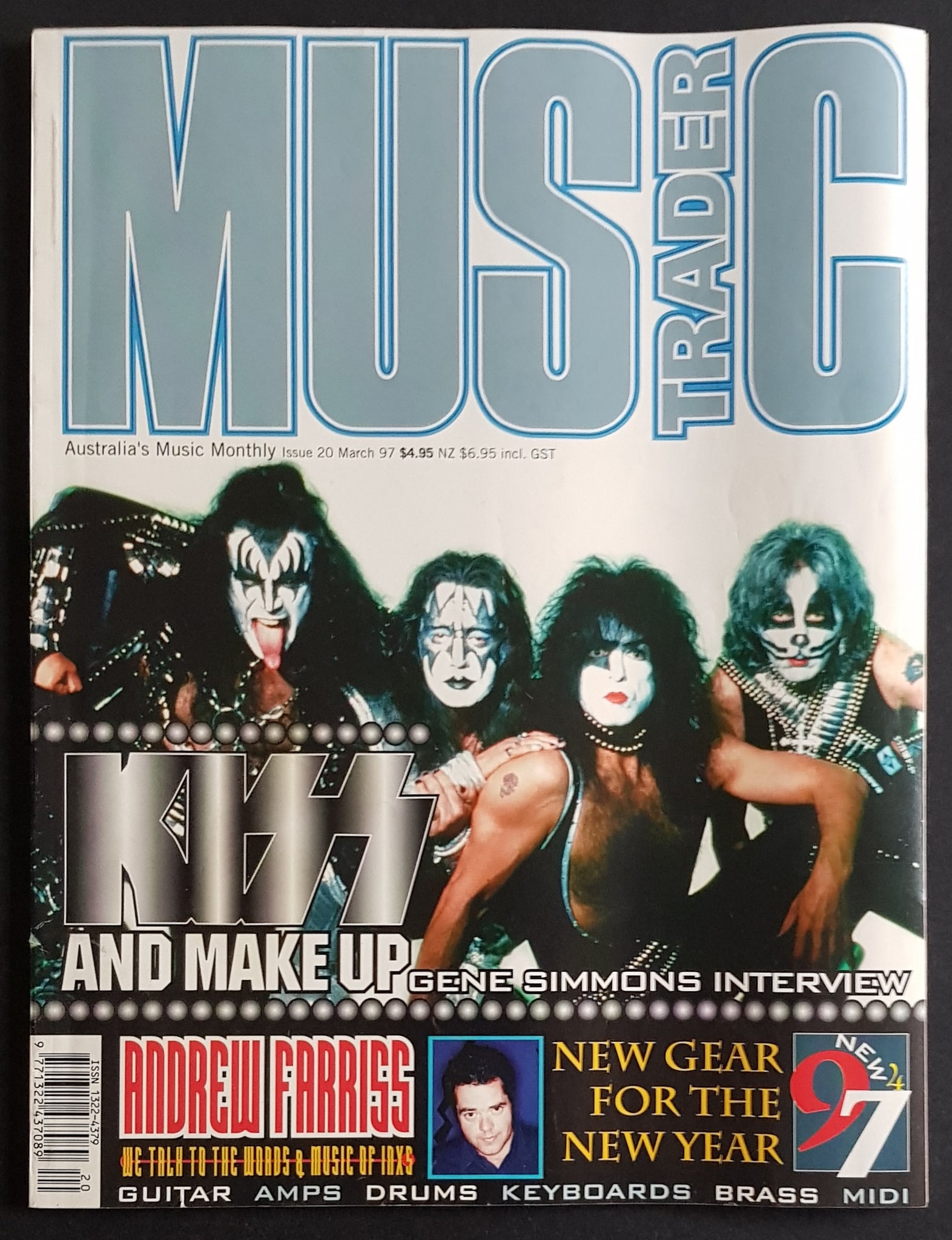 w.Kiss Cover + 4 page feature on Kiss / Gene Simmons Interview. 4 page feature on INXS / Andrew Farris Interview.