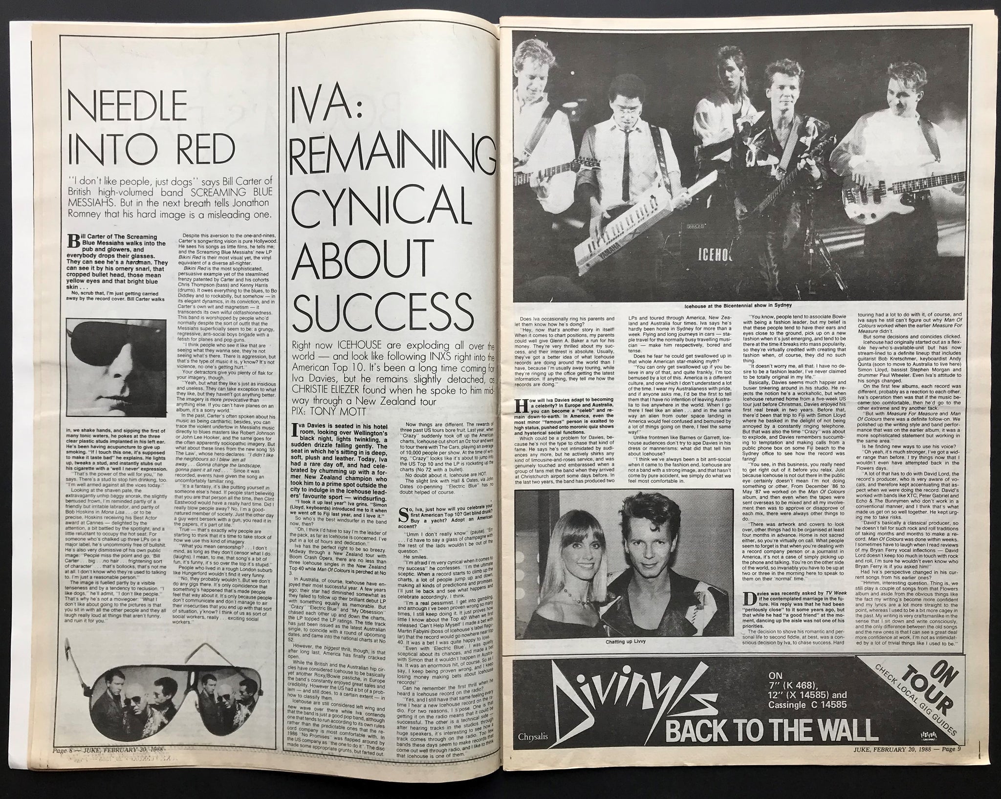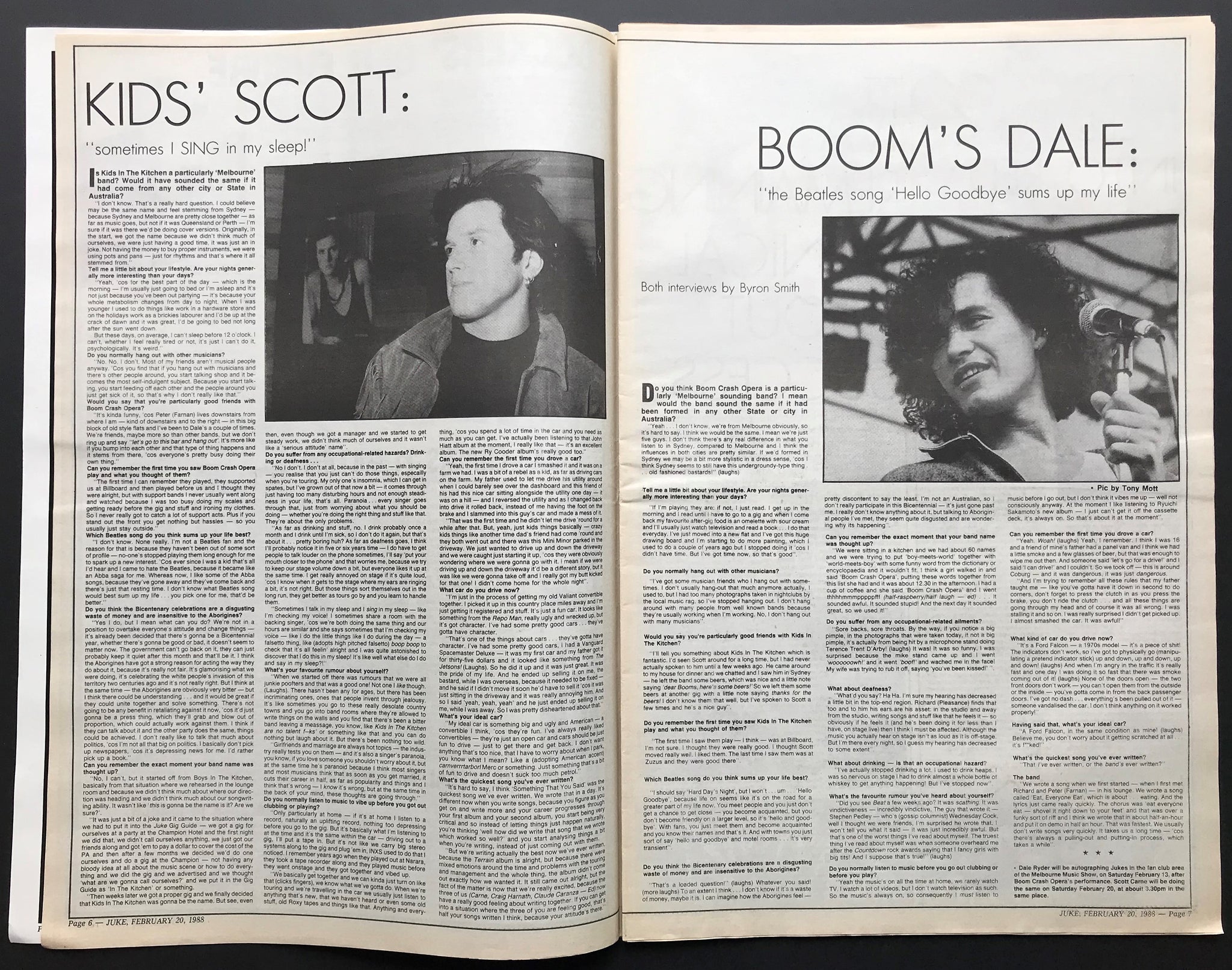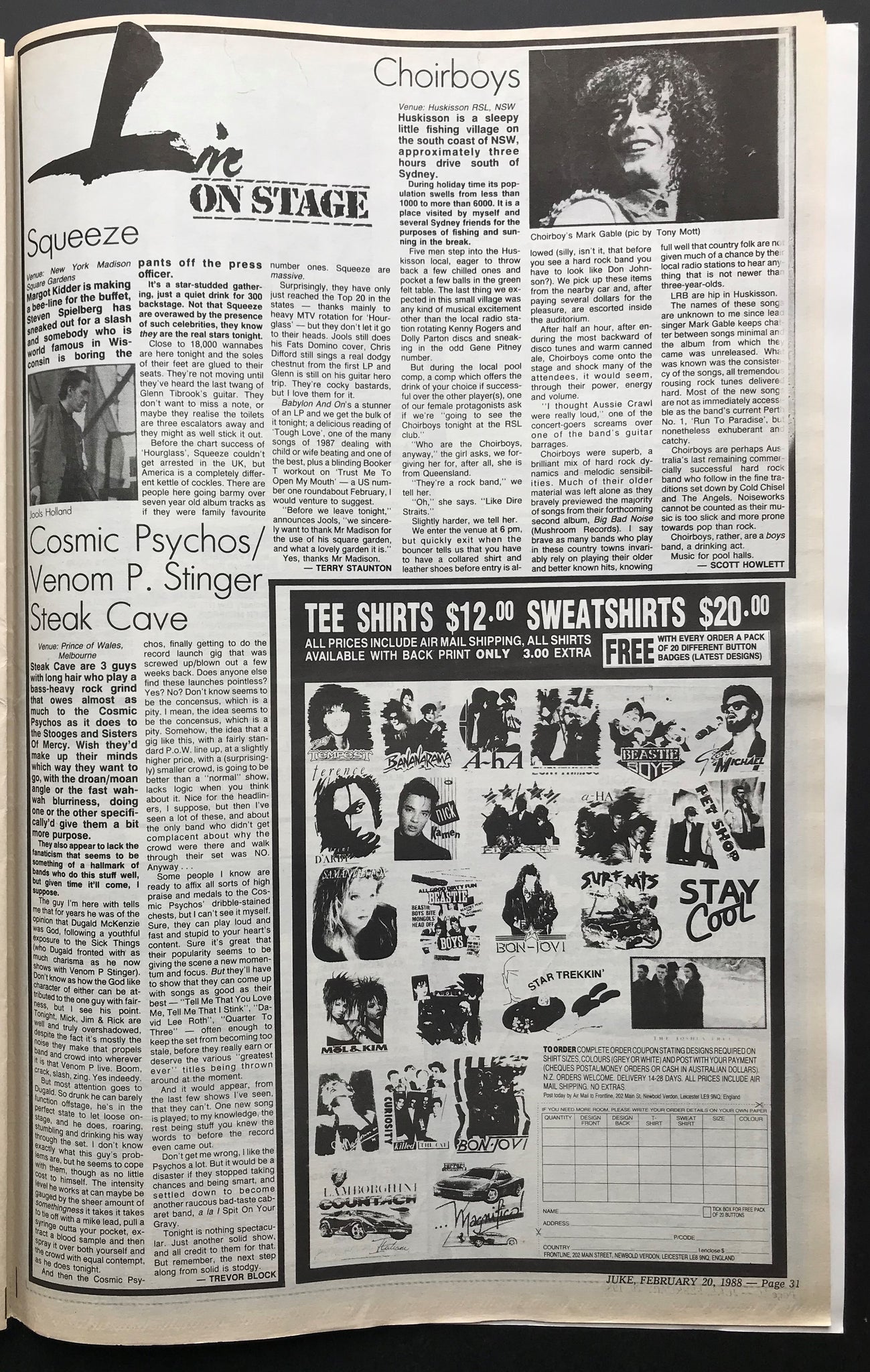 w. Scott Carne & Dale From Boom Crash Opera Cover & Article. Issue Also Features, Reviews And Or Has Ads for Icehouse, David Lee Roth, The Chills, Cosmic Psychos, Venom P.Stinger & others.