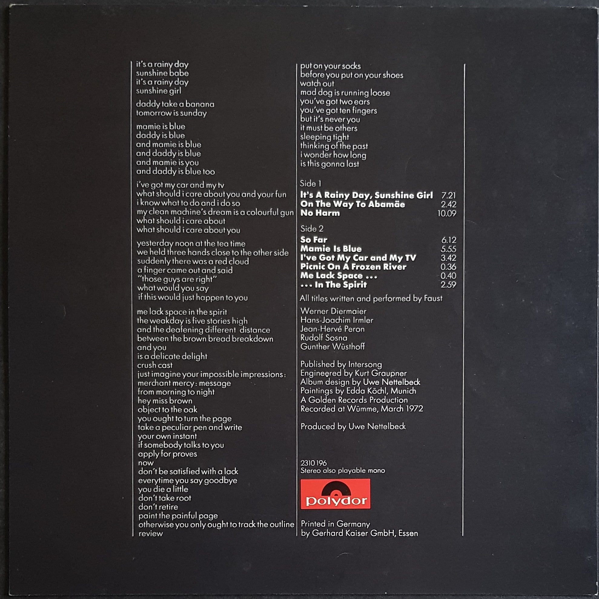 1972 Original Black Label Polydor 2310196. Complete w.10 Inserts and Black Inner. (Inserts are Excellent). Very clean copy
