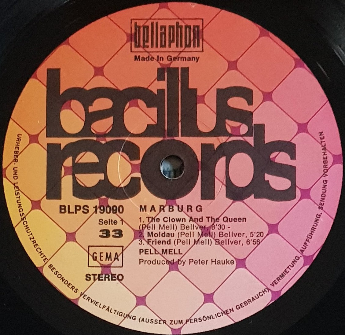 1972 Bacillus Records BLPS 19090. Minor edge wear, tiniest of surface tears on front & scrape mark on rear