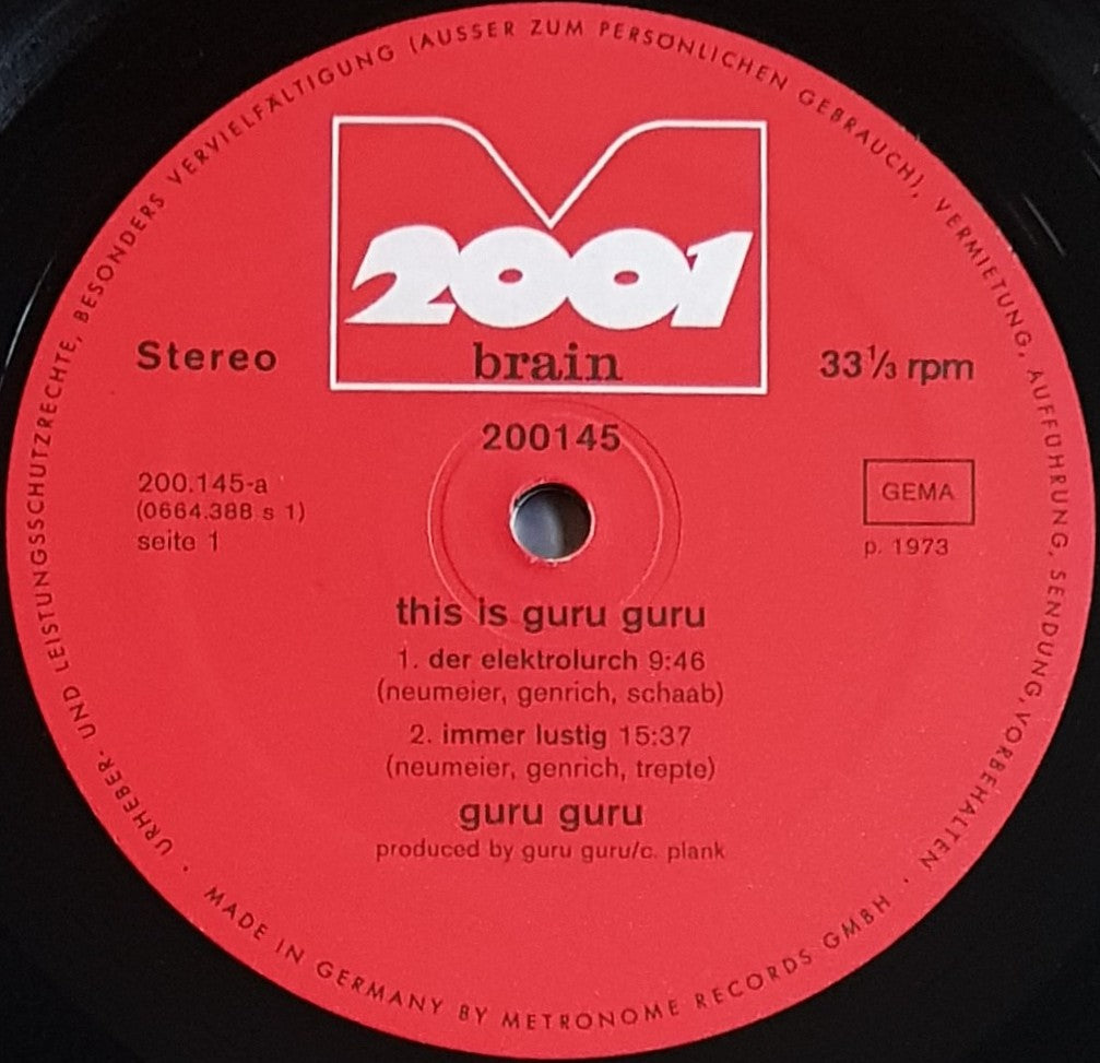 1973 Metronome 2001 / Brain 200.145. Surface wear, edge wear, creases along spine & 2 seams about to split. Light Scuffs and Hairlines on Disc. 2 or 3 marks will sound.