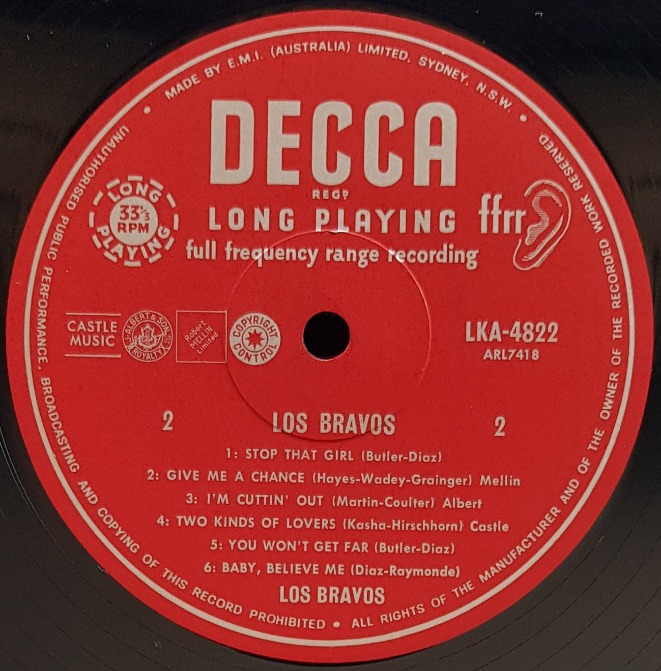 1966 Decca LKA 4822. Minor ring mark & deletion stamp on rear.