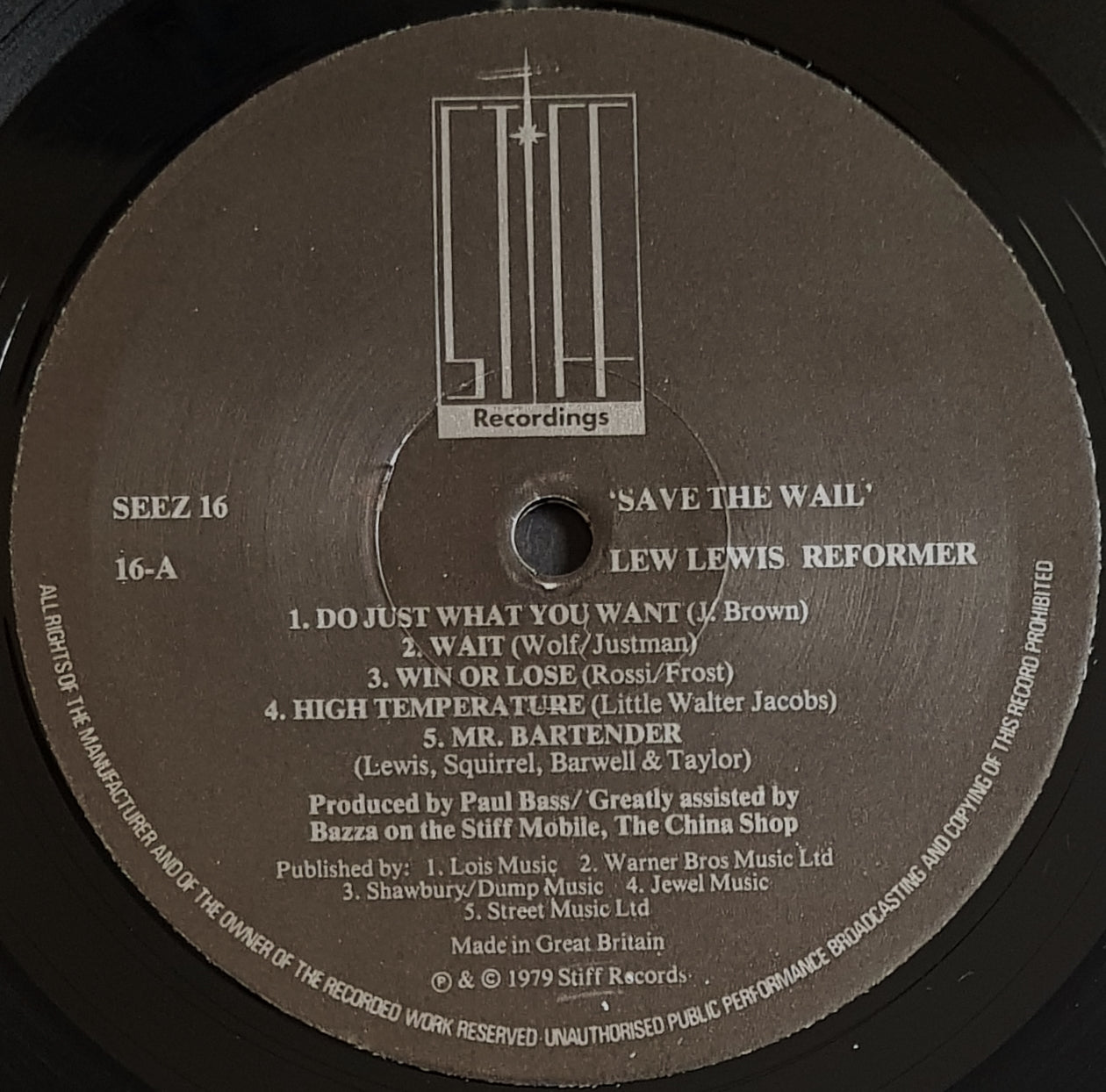 1979 Stiff Records SEEZ 16. Minor Wear and Scuffing on Cover. Light Creases Along Spine