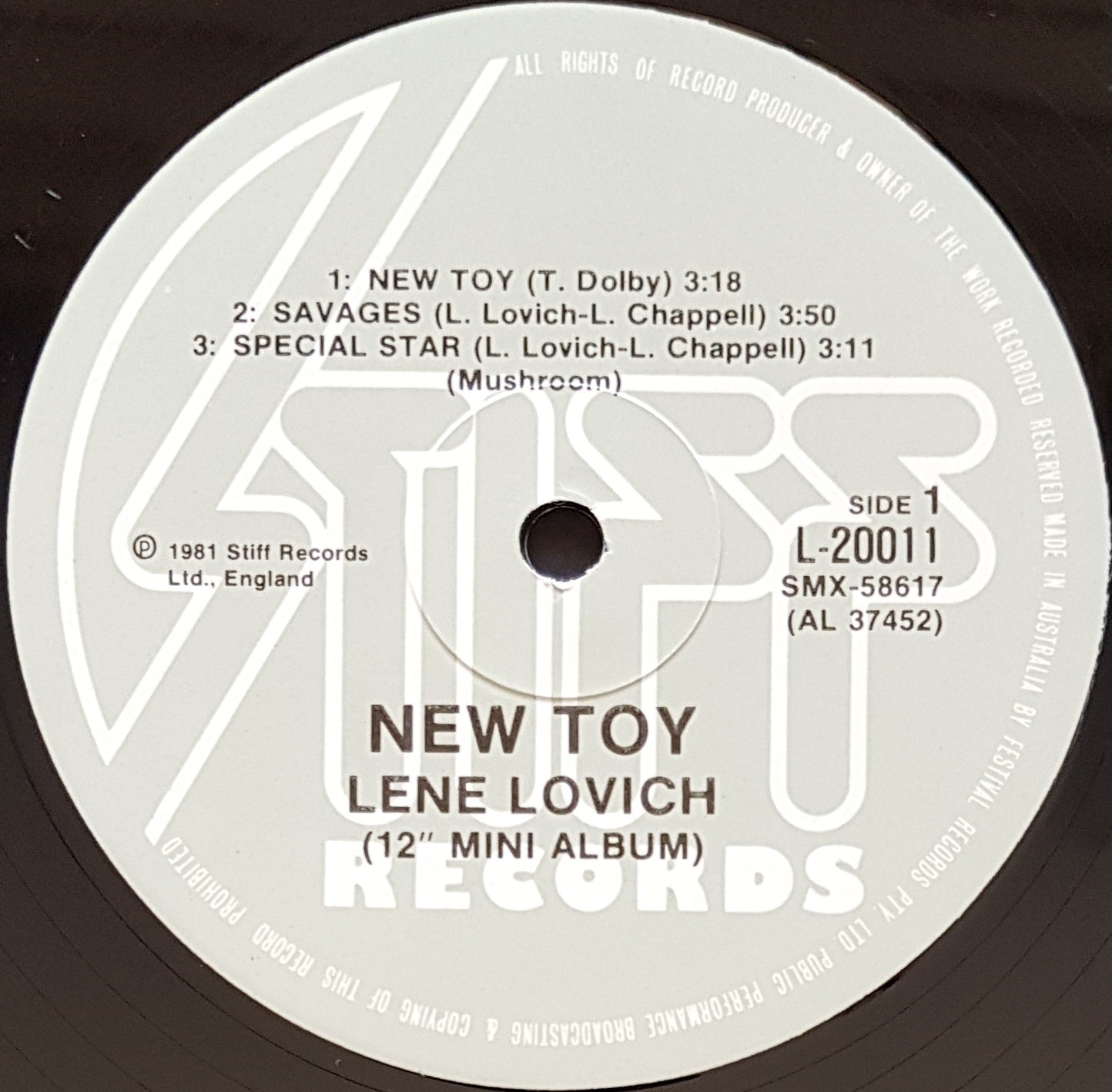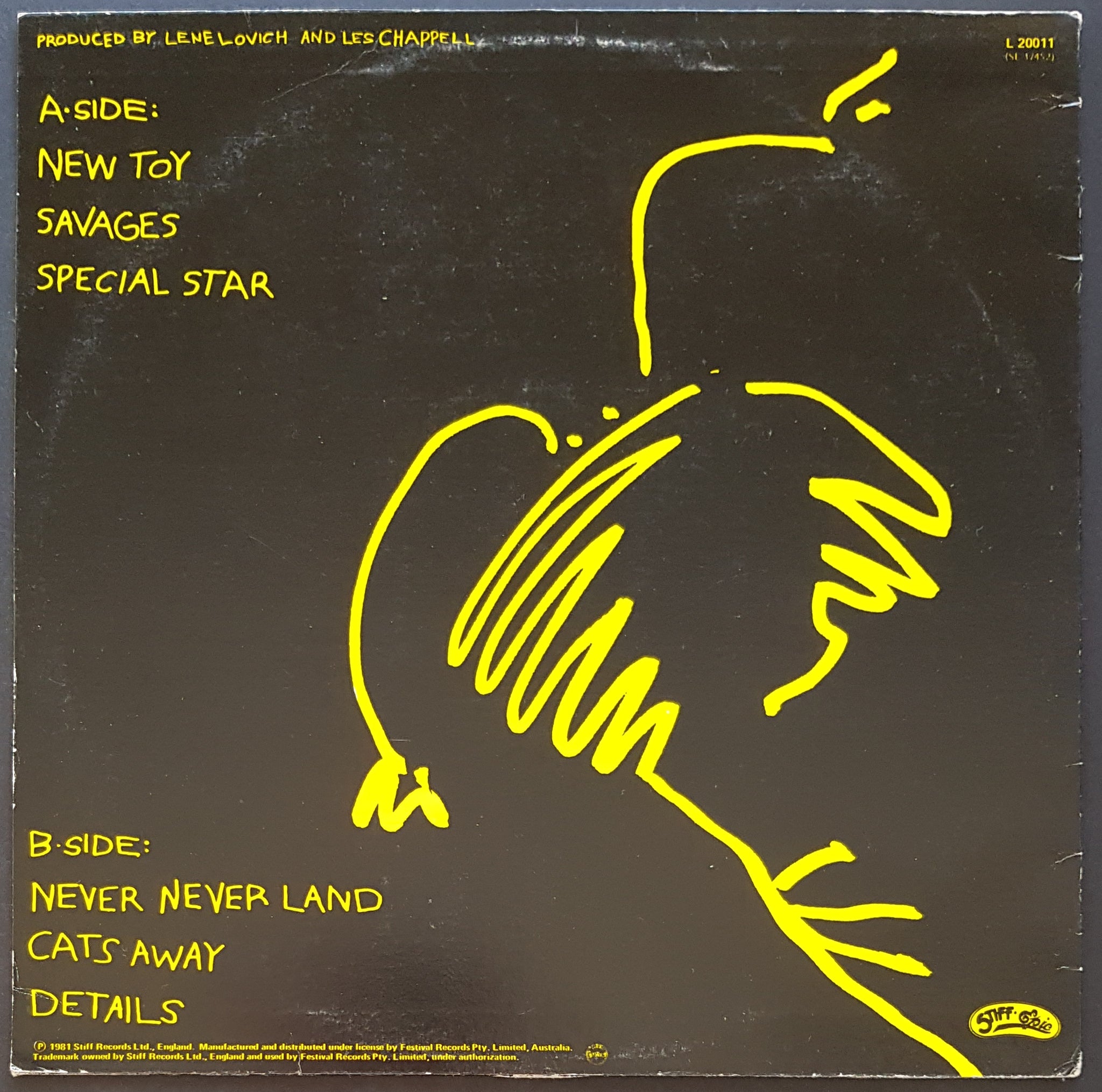 Mini LP. 1981 Stiff Records L-20011. Cover has minor ring and edge wear. Light creases along seams