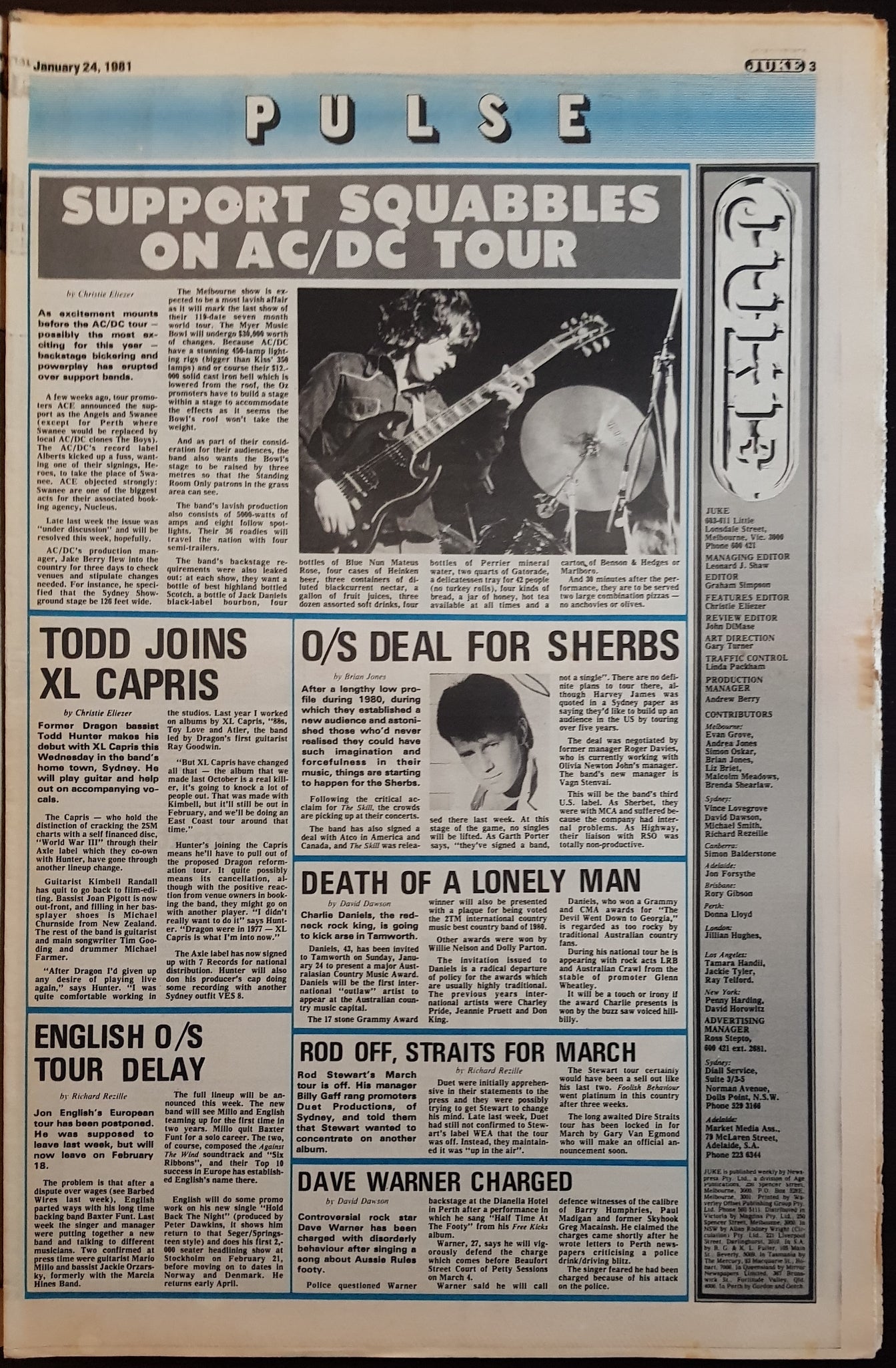 w. L.R.B. Cover & Article. Issue Also Features, Reviews And Or Has Ads For AC/DC, Def Leppard, Sherbs + Others.