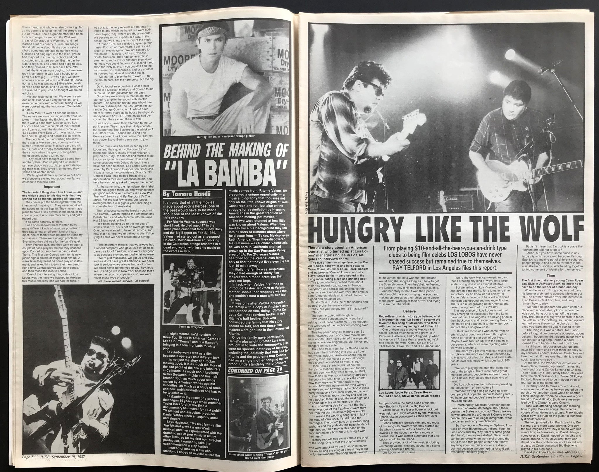 w. Lobos Cover & Article. Issue Also Features, Reviews And Or Has Ads for Bon Jovi, Peter Garrett, Guns N'Roses, Metallica, INXS + Others.