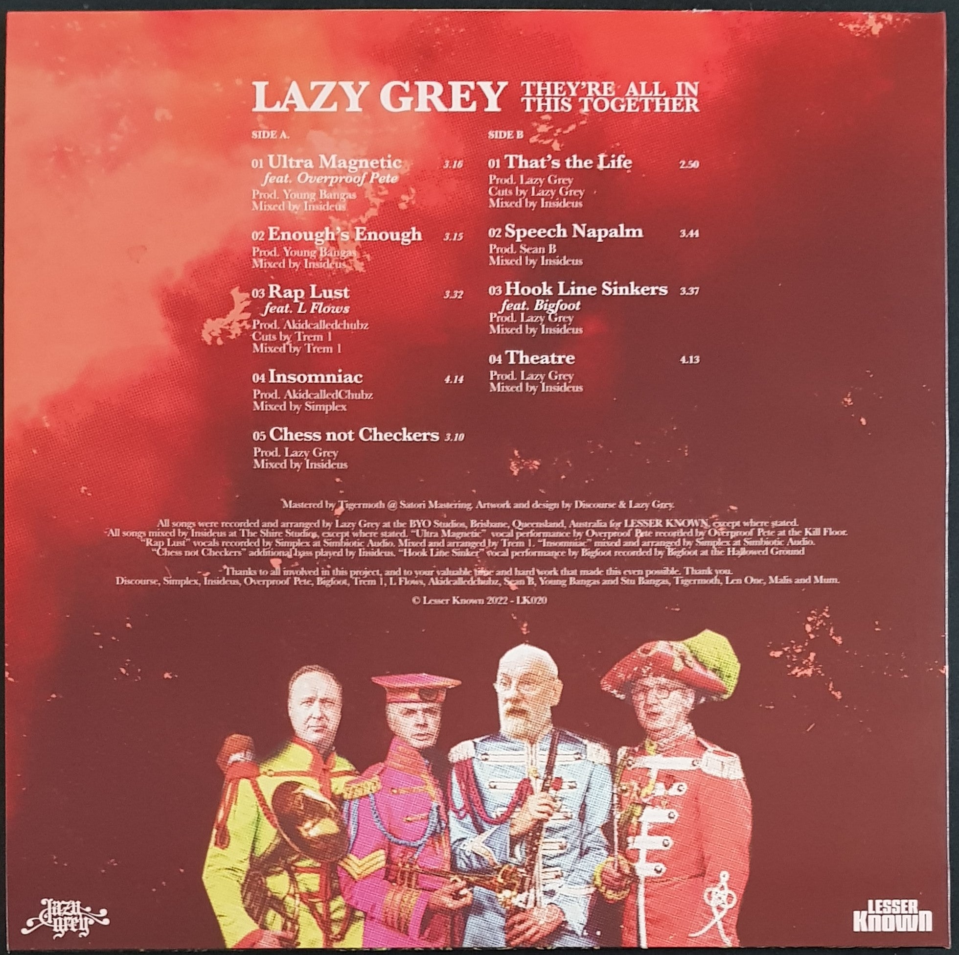 2022 Lesser Known LK020. Small Mark at End Of Rap Lust & Start of Insomniac will Sound. Minor scuffs. Labels have not adhered properly to disc, noticeable around spindle. No insert.