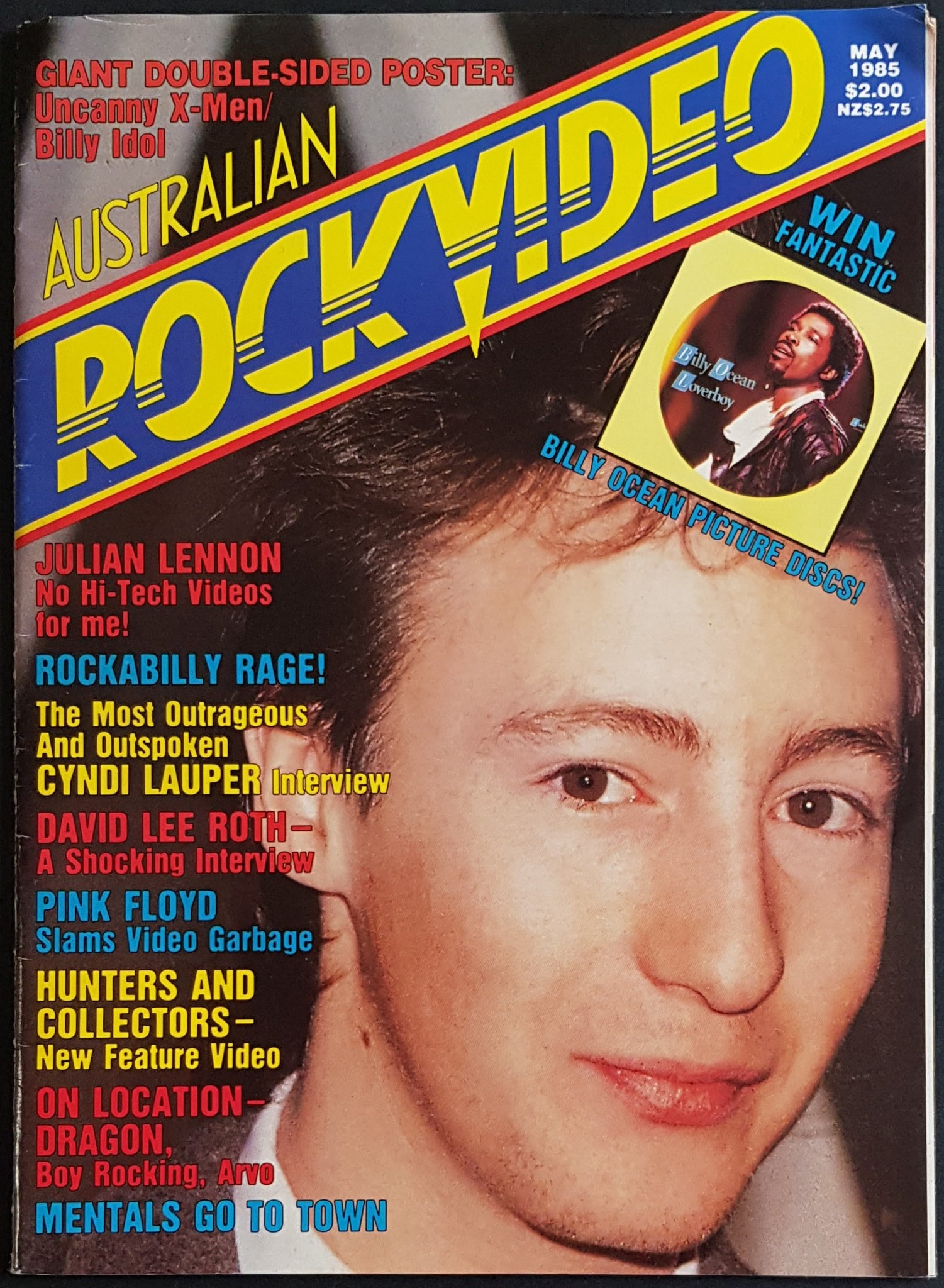 w.Julian Cover & Article. Large PinUp of Billy Idol & Uncanny X-Men. Articles on Aussie Rockabilly, Cyndi Lauper, David Lee Roth, Hunters & Collectors, Dragon, Mental As Anything