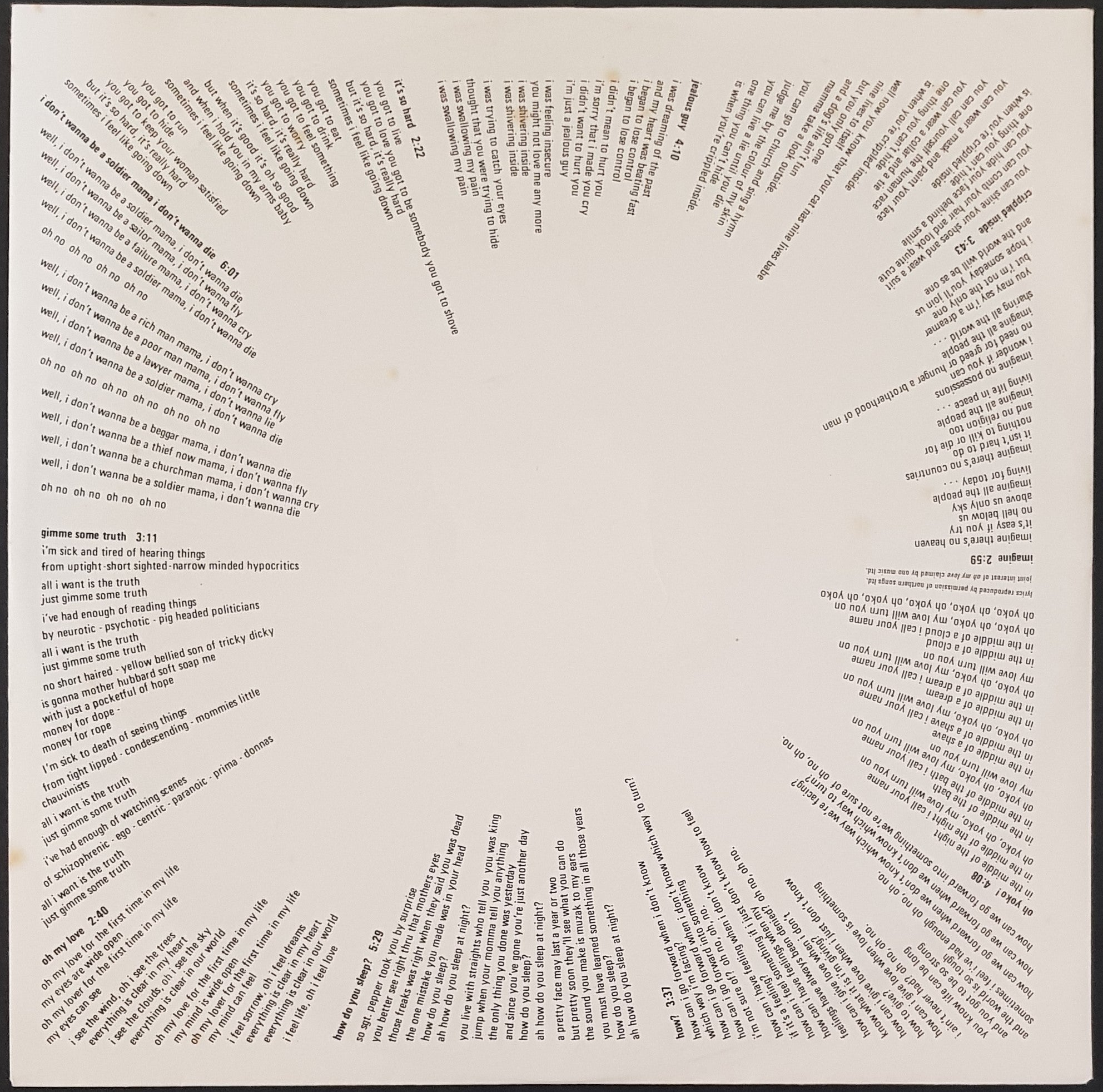 Original w.Front Laminated Cover. Complete with Inner, Poster & Postcard (all have foxing as does the label). 1971 Apple Records PAS 10004
