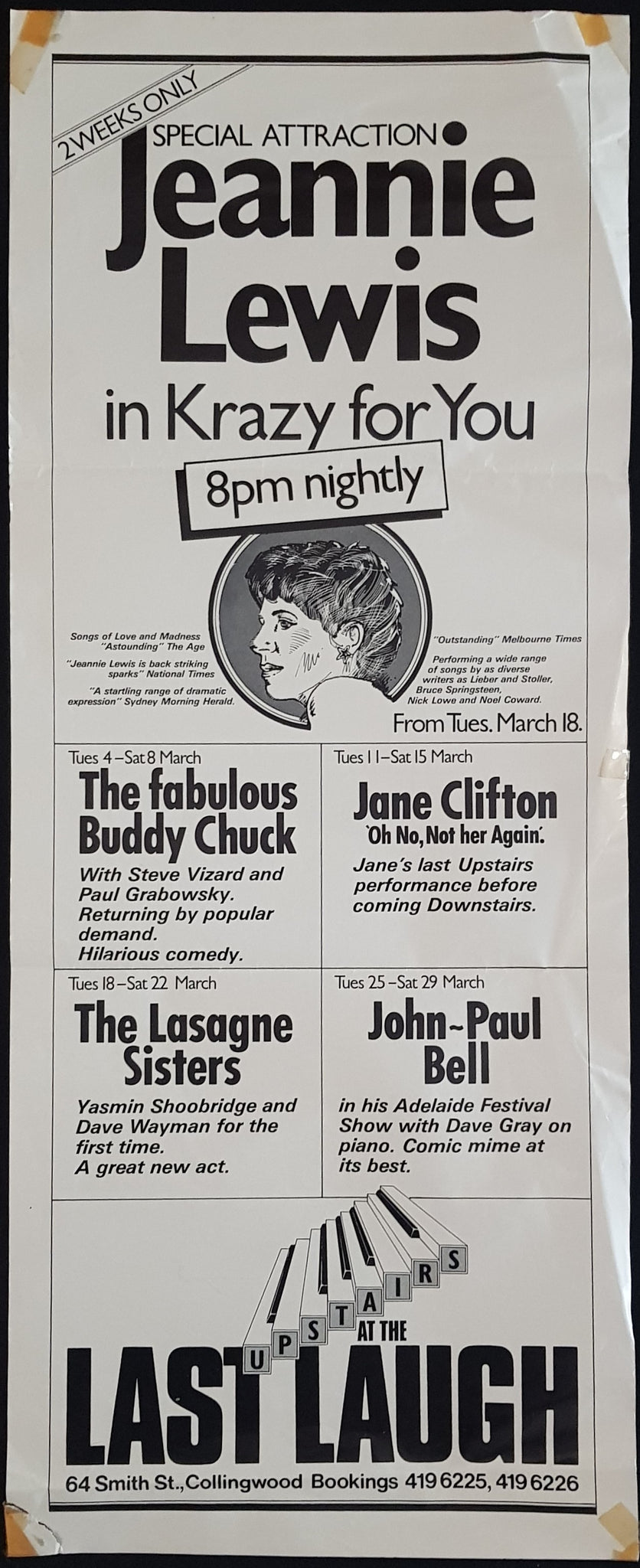 w.2 Week Residency at The Last Laugh March 1980. 26cm x 65cm. Folded, tape & tears.