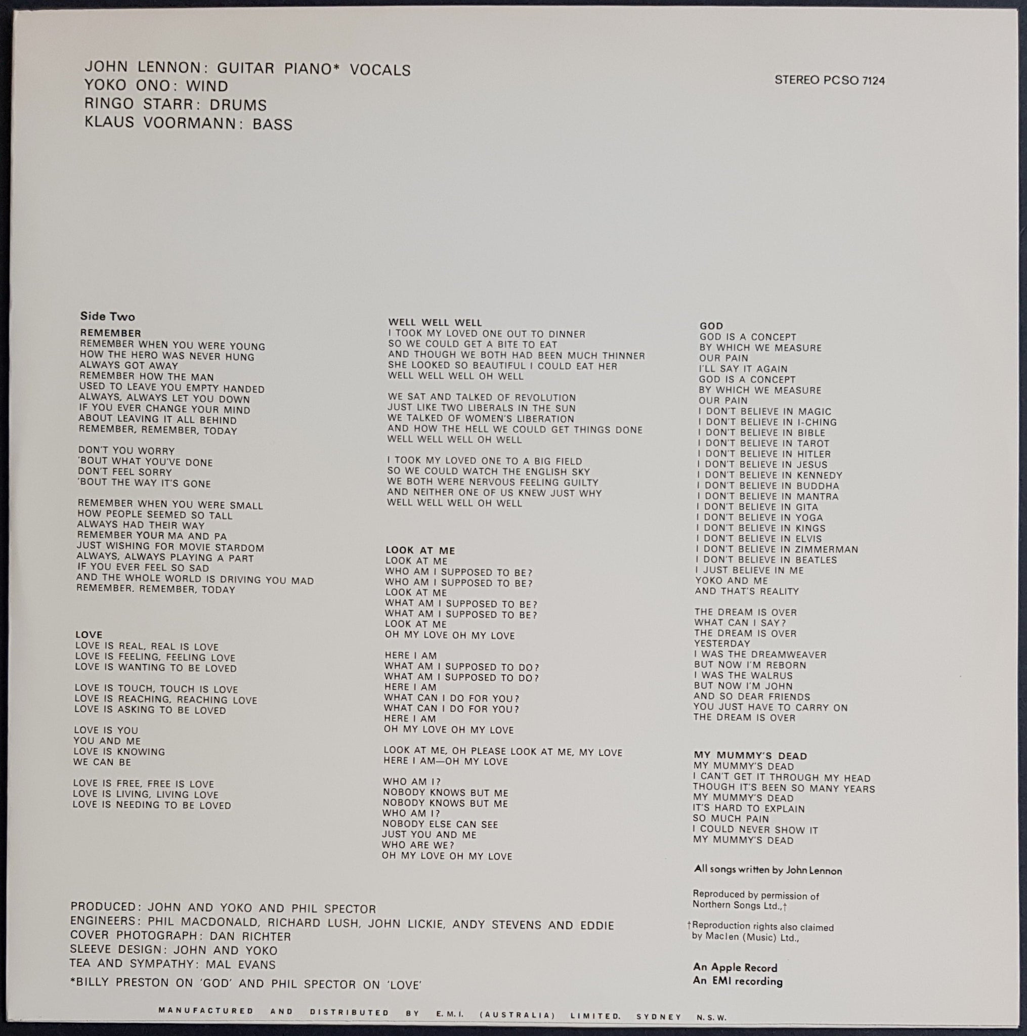 w.Inner Sleeve. 1970 Apple Records PCSO 7124