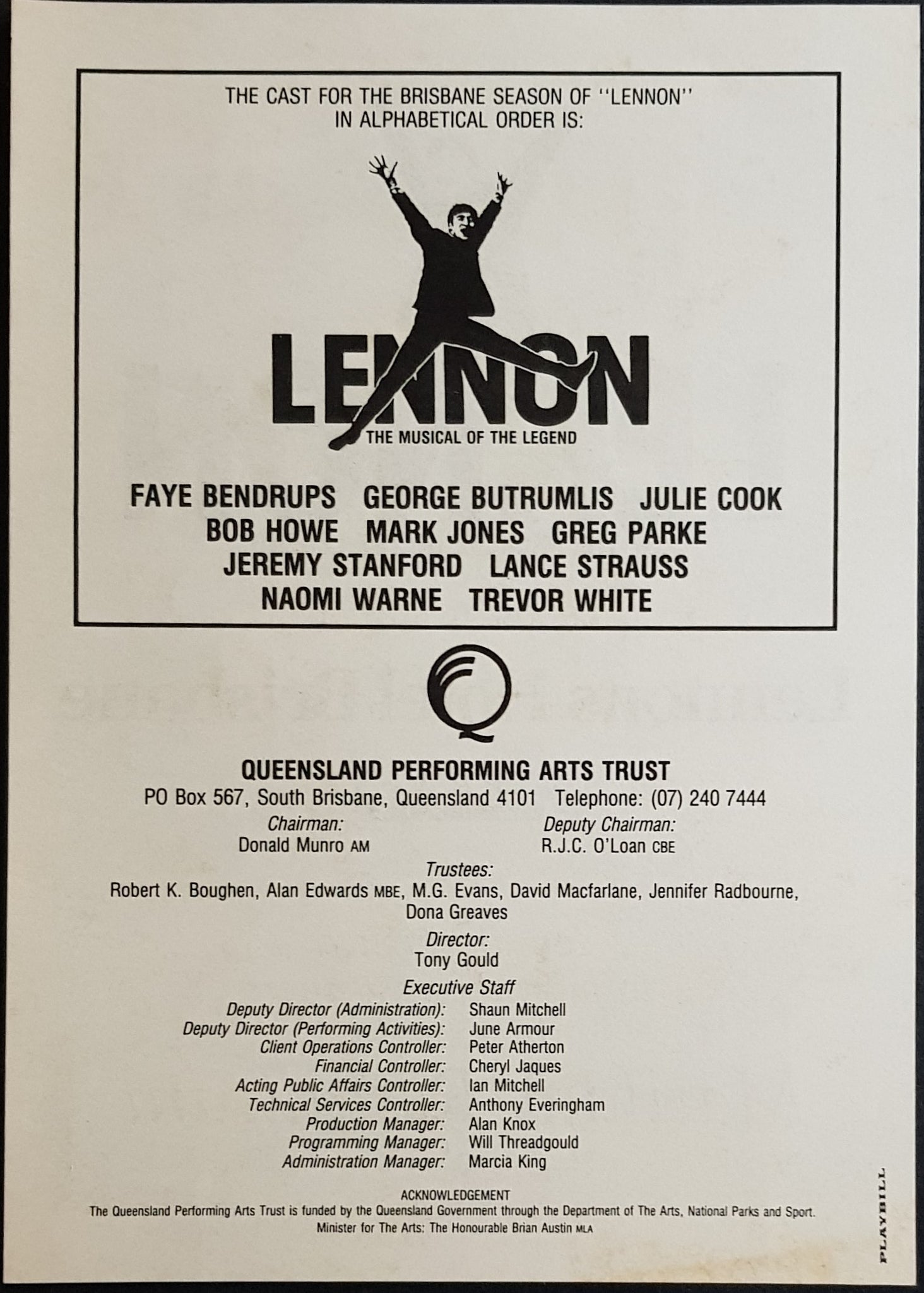 For Theatre Performance. Insert & Handbill are for Brisbane Performances 1986. Has some Beatles Content, reproduced from 1964 Program. Paper has heavy foxing