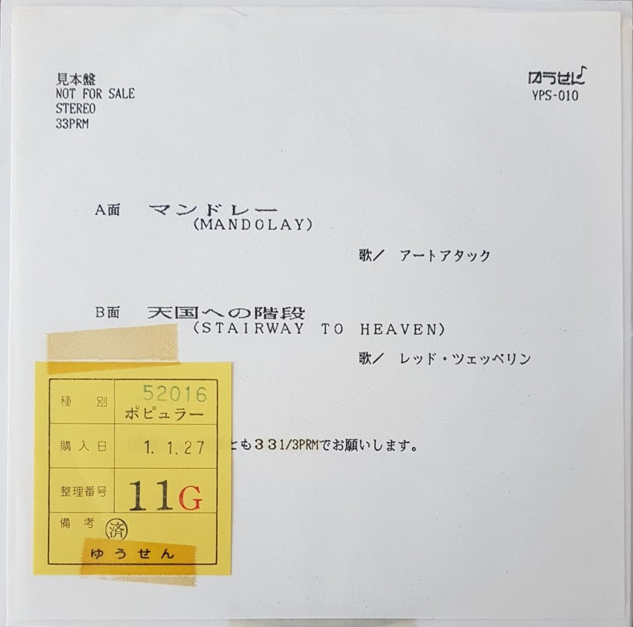 White Label Promo Only Cable Radio Issue w.Insert Title Sleeve. 1988 Yusen YPS-010 w.'Mandolay' 'A'Side. Small Writing On Label & Small Library Referce Tag On Insert