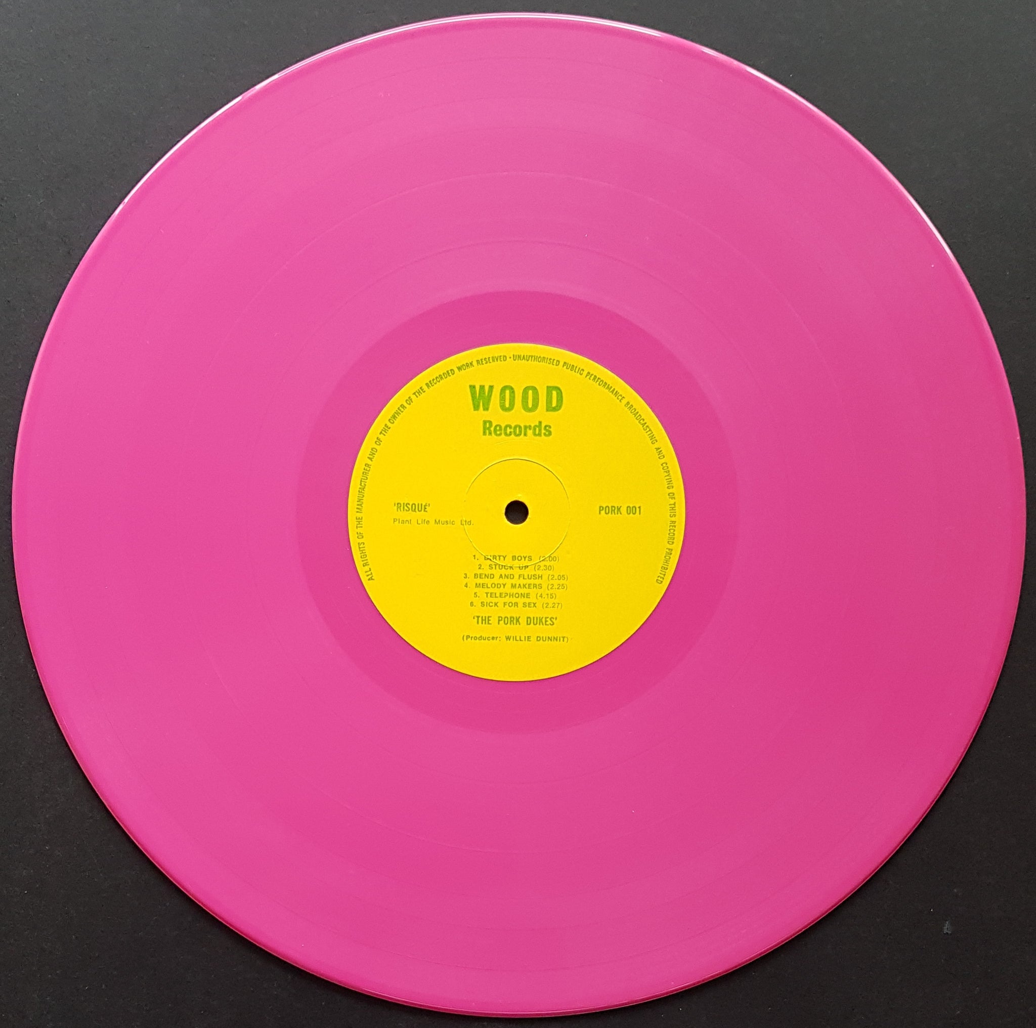 w.Insert. 1978 Wood Records PORK 001. Original Hype Sticker From Shrink Has Been Salvaged. Postcard Is Neatly Taped To Front Cover (Tape has dried over time). Info Sticker Is Attached Too.