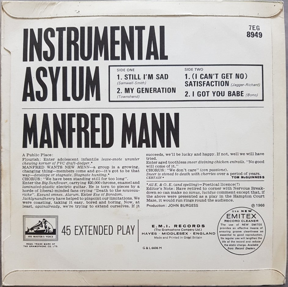 EP PS. 1966 Original HMV Issue 7EG 8949. All Tracks Are Cover Versions. Minor Crease on Sleeve, Light Hairlines on Disc