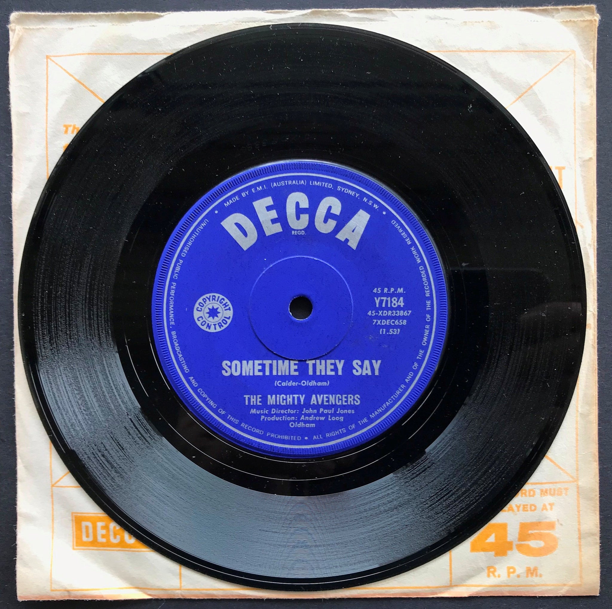 1964 Decca Y7184. Sticker on Label