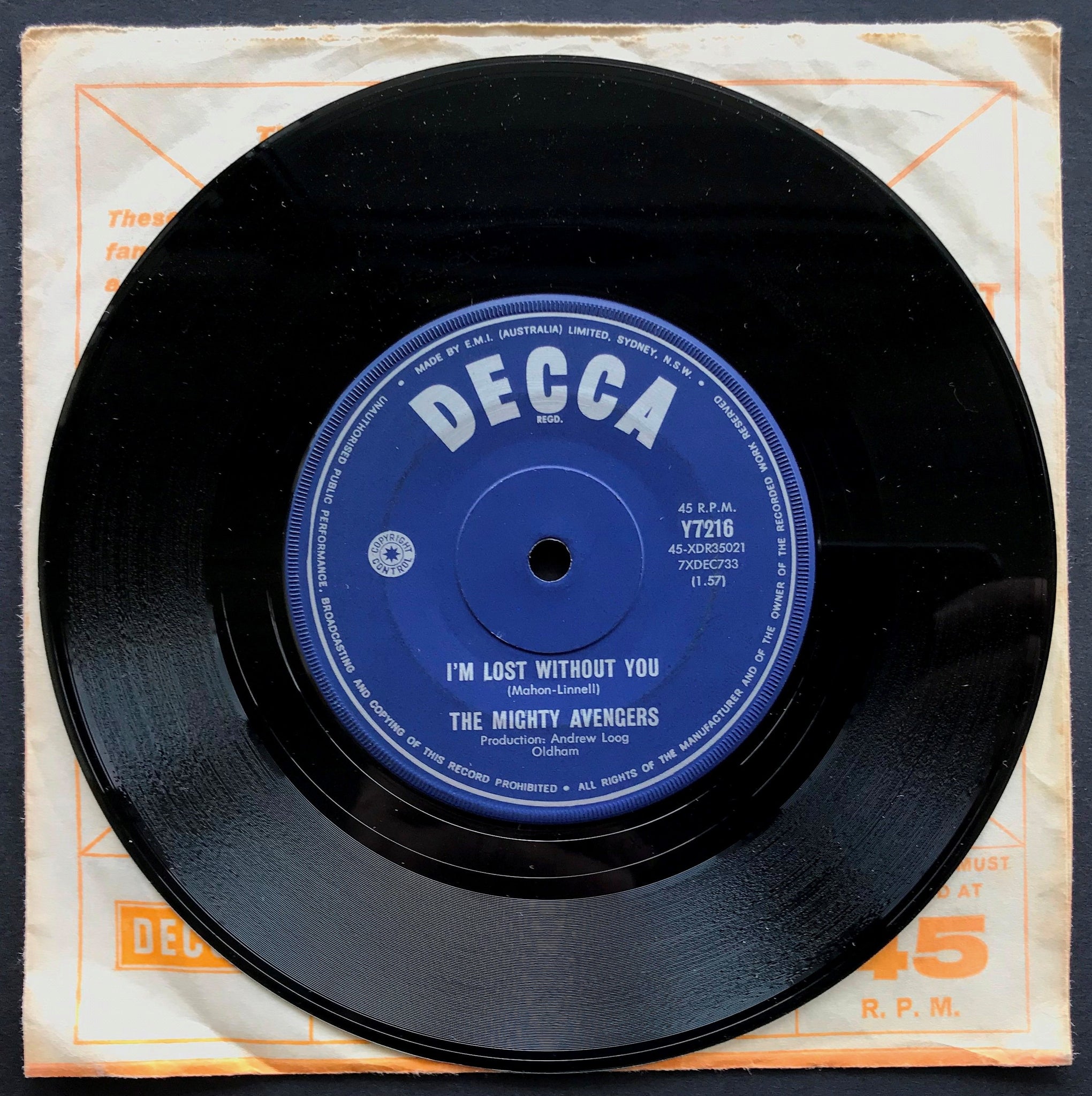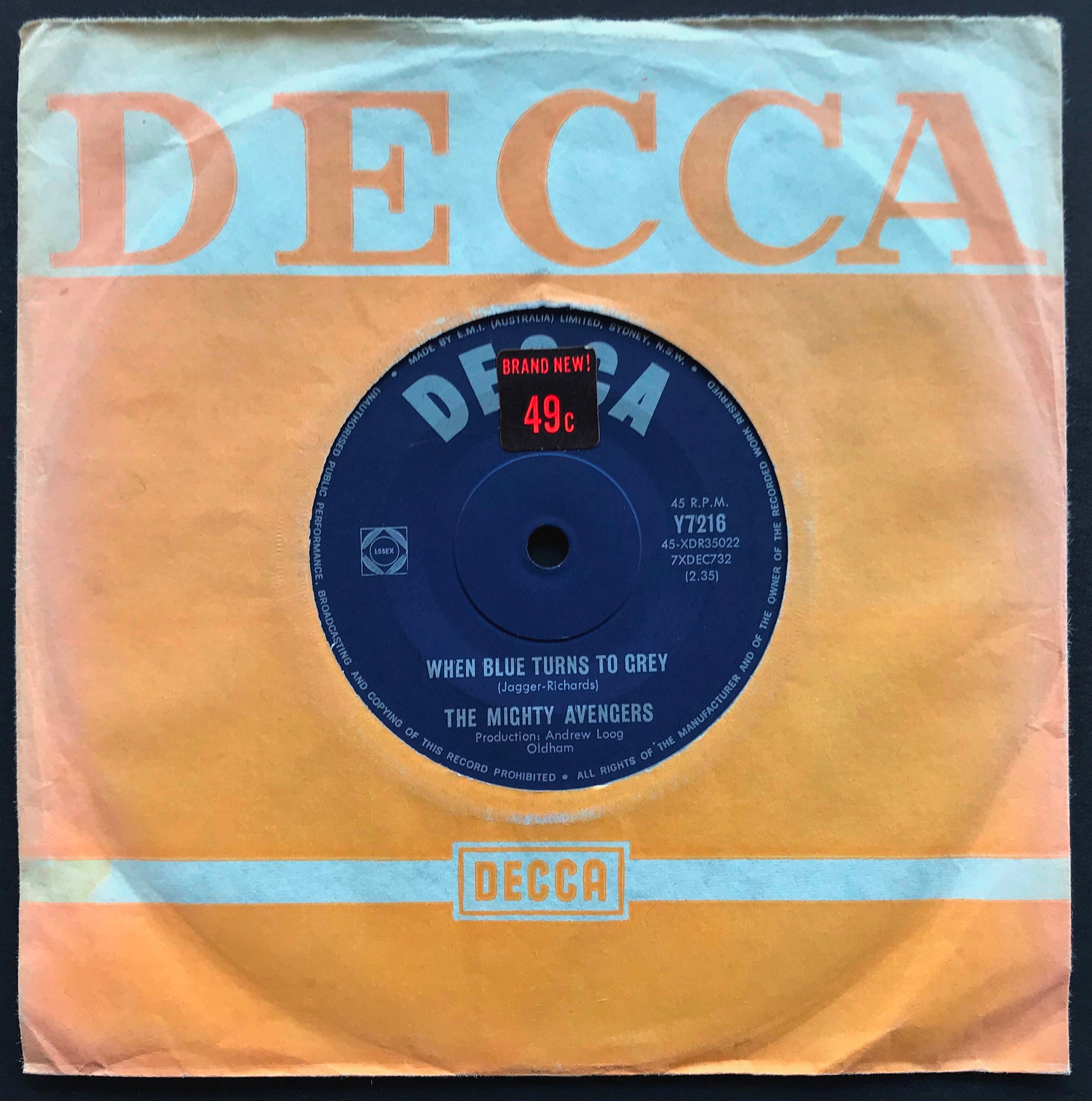 1965 Decca Y7216. Sticker on Label